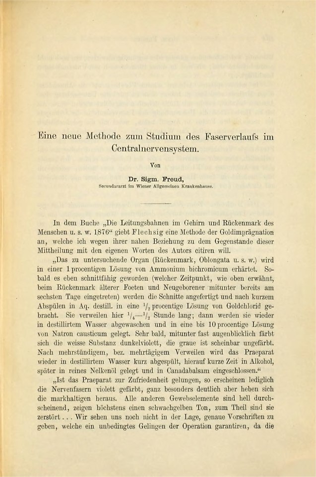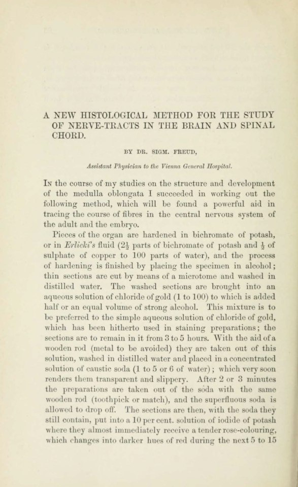Freud, Sigmund | 1884-002/1884.5 | A New Histological Method for the Study of Nerve-Tracts in the Brain and Spinal Cord | Separatum Brain. A Journal of Neurology, 7, 1884, 1 | 86–88 | Teilweise - | Fertig ✔ | Teilweise - | Fehlt ✖ | Fehlt ✖ | Ganz fertig / zutreffend ✔ | ✔ | EB | ✔ | ||||