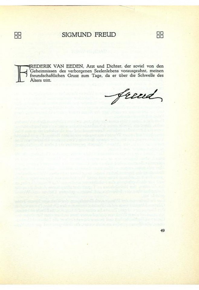 | Freud, Sigmund | 1930-052/1930 | 1930m | Sigmund Freud [für Frederik von Eeden] | Liber Amicorum. | 49 | Fertig ✔ | Fertig ✔ | Ganz fertig / zutreffend ✔ | Fertig ✔ | Fehlt ✖ | Fehlt ✖ | ✔ | EB | ✔ | |||