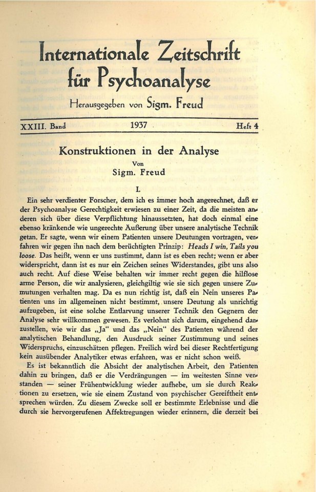 Freud, Sigmund | 1937-002/1937 | 1937d | 1937-06 | 10499 | Konstruktionen in der Analyse | IZP 23, 1937, 4 | 459–469 | Fertig ✔ | Fertig ✔ | Ganz fertig / zutreffend ✔ | Fehlt ✖ | Fehlt ✖ | Ganz fertig / zutreffend ✔ | ✔ | EB | ✔ | |