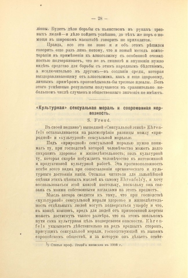 Freud, Sigmund | G., E. | 1908-003/1912.ru | 'культурная' сексуальная мораль и современная нервозность | Психотерапиія, 3, 1912, 1 | 28–47 | Fertig ✔ | Fertig ✔ | Ganz fertig / zutreffend ✔ | Fehlt ✖ | Fehlt ✖ | Ganz fertig / zutreffend ✔ | ✔ | EB | ✔ | |||