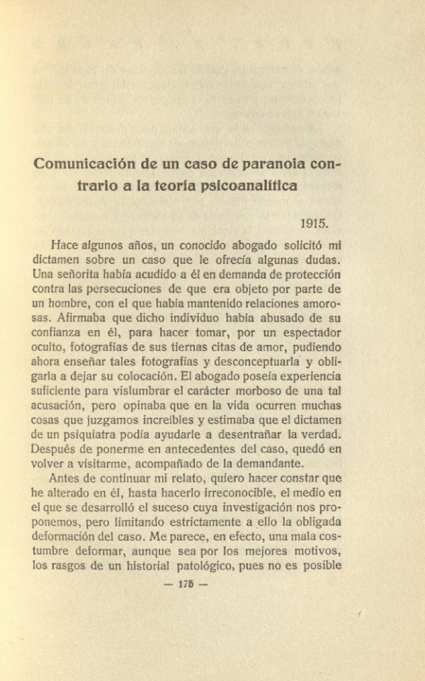 Comunicación de un caso de paranoia contrario a la teoría psicoanalítica