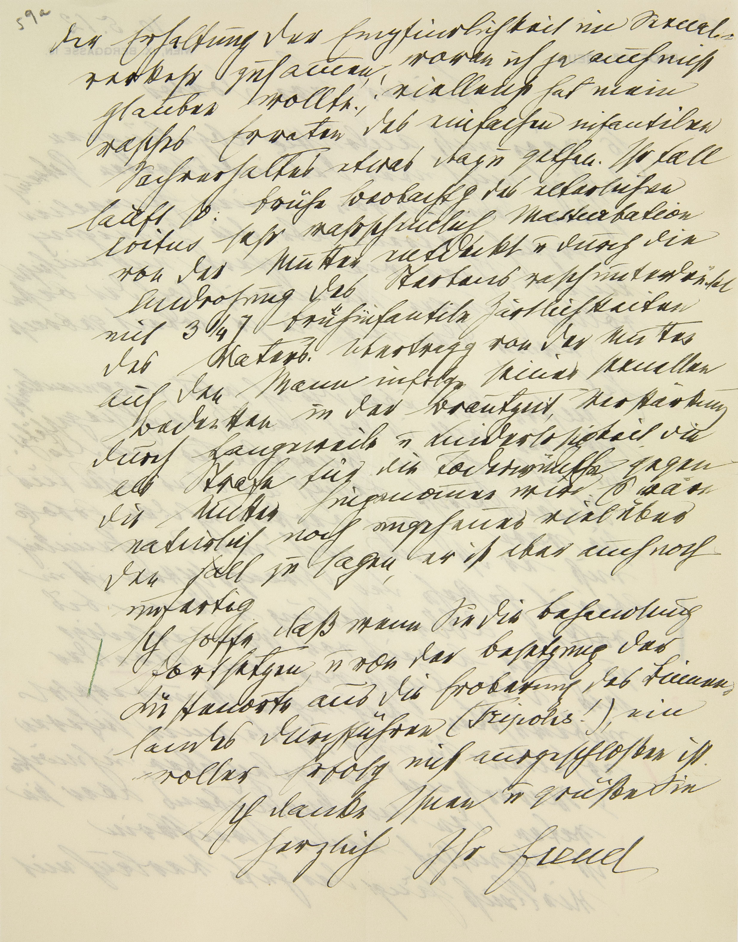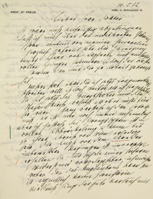Unsere Pat., über die ich jetzt fragmentarisch schreiben will, ist doch weiter, als ich sie geschätzt. Sie hat jetzt das Burgtheater und die Stefanskirche besucht, als ob es nichts für sie wäre. Ganz verstehe ich den Erfolg nicht, er ist mir noch immer unheimlich. Aber ich gestehe, das Zwangssystem ist in voller Abbröckelung und kann bis zu ihrer Abreise von Wien erledigt sein. Die Angst vor dem Kern der unbewußten Regungen ist unversehrt erhalten. Sie muß sich da einen sicheren Widerstand vorgelegt haben; ich möchte raten, den des Unglaubens, aber sie ist eigentlich keine Zweiflerin.a