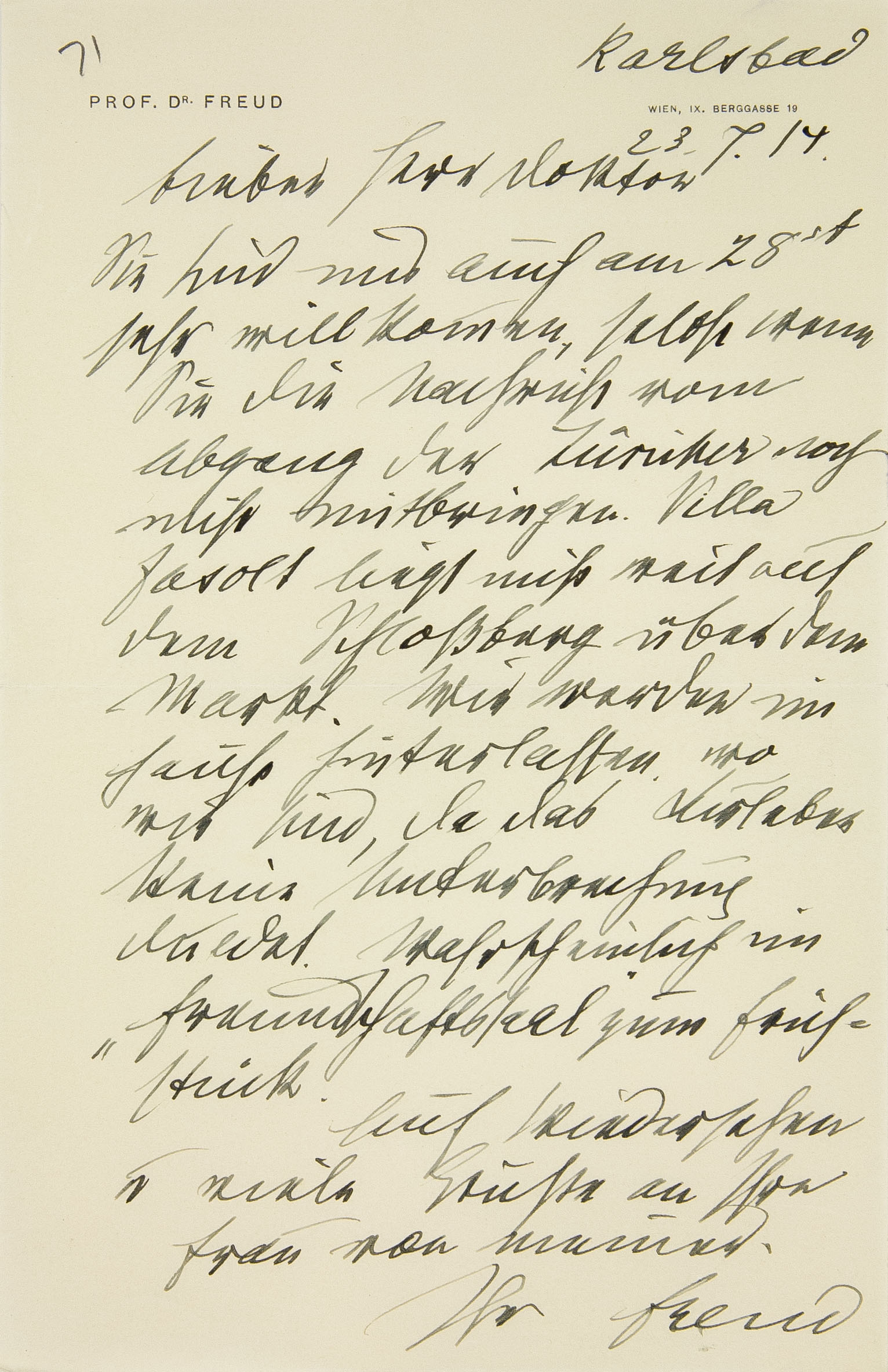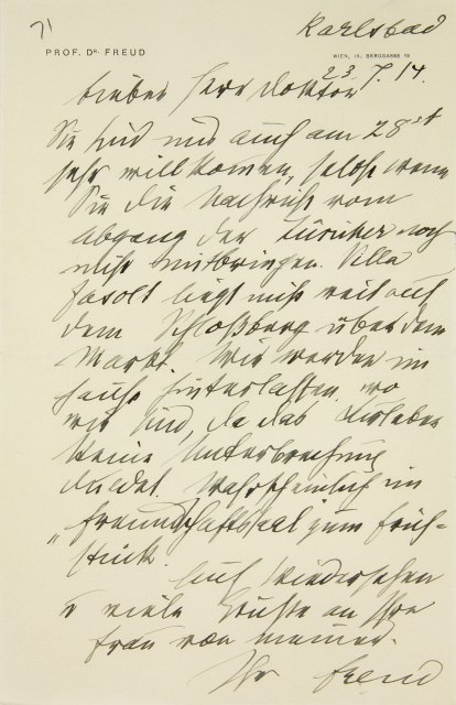 Sie sind uns auch am 28. sehr willkommen, selbst wenn Sie die Nachricht vom Abgang der Züricher noch nicht mitbringen.1 Villa Fasolt liegt nicht weit auf dem Schloßberg über dem Markt. Wir werden im Hause hinterlassen, wo wir sind, da das Kurleben keine Unterbrechung duldet. Wahrscheinlich im „Freundschaftssaal“ zum Frühstück.