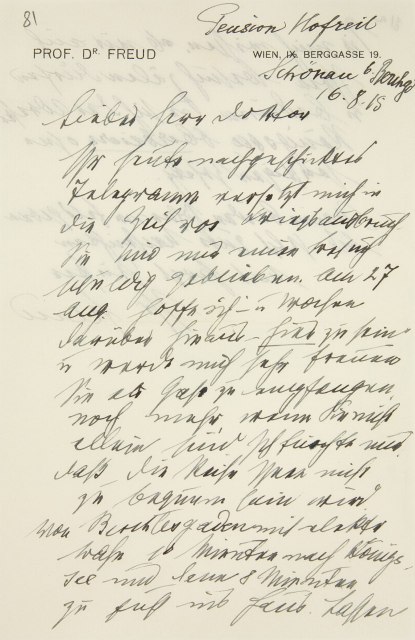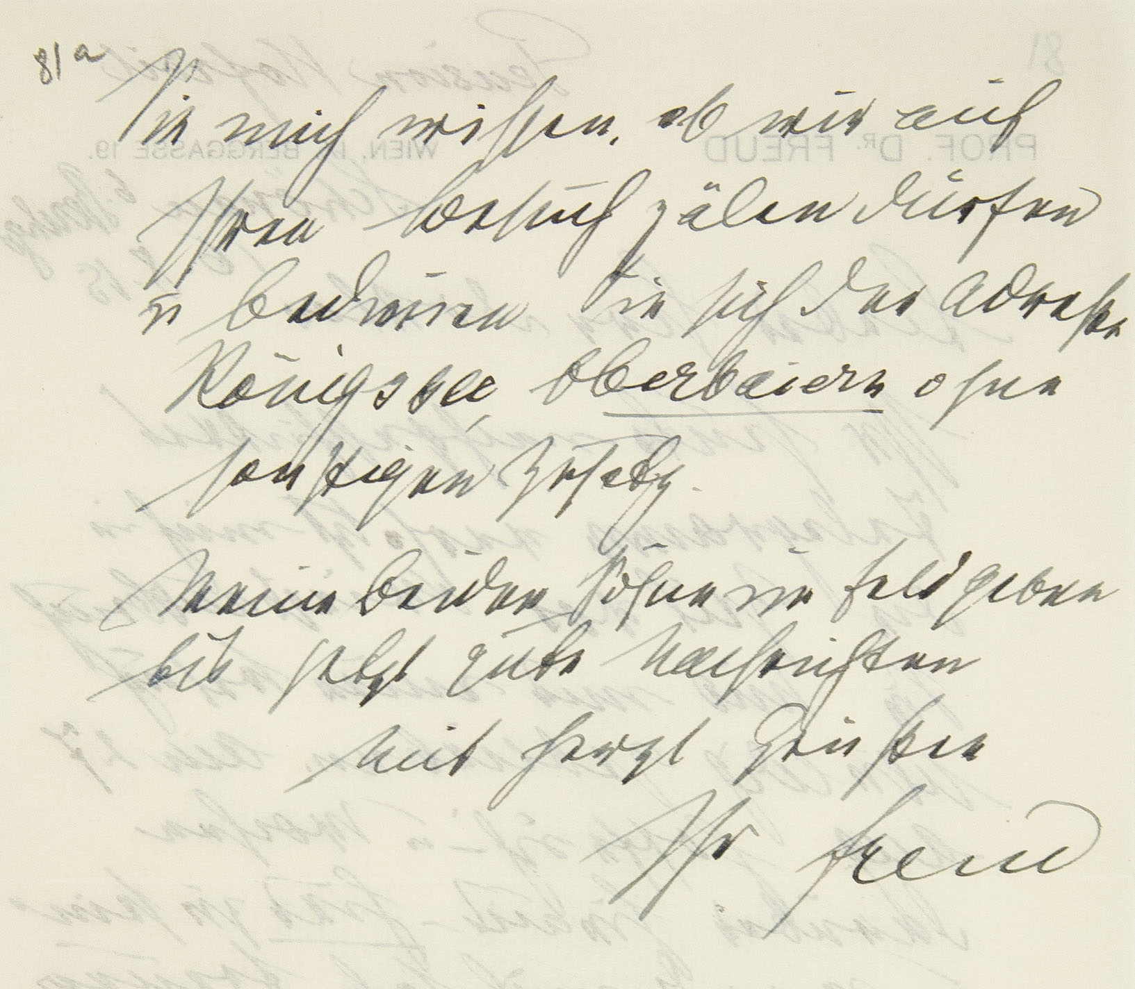 Ihr heute nachgeschicktes Telegramm1 versetzt mich in die Zeit vor Kriegsausbruch. Sie sind mir einen Besuch schuldig geblieben. Am 27. Aug. hoffe ich – und Wochen darüber hinaus –, hier zu sein, und werde mich sehr freuen, Sie als Gast zu empfangen, noch mehr, wenn Sie nicht allein sind. Ich fürchte nur, daß die Reise Ihnen nicht zu bequem sein wird. Von Berchtesgaden mit elektrischer Bahn 10 Minuten nach Königssee, und dann 8 Minuten zu Fuß ins Haus. Lassen Sie mich wissen, ob wir auf Ihren Besuch zählen dürfen, und bedienen Sie sich der Adresse Königssee, Oberbaiern ohne sonstigen Zusatz.