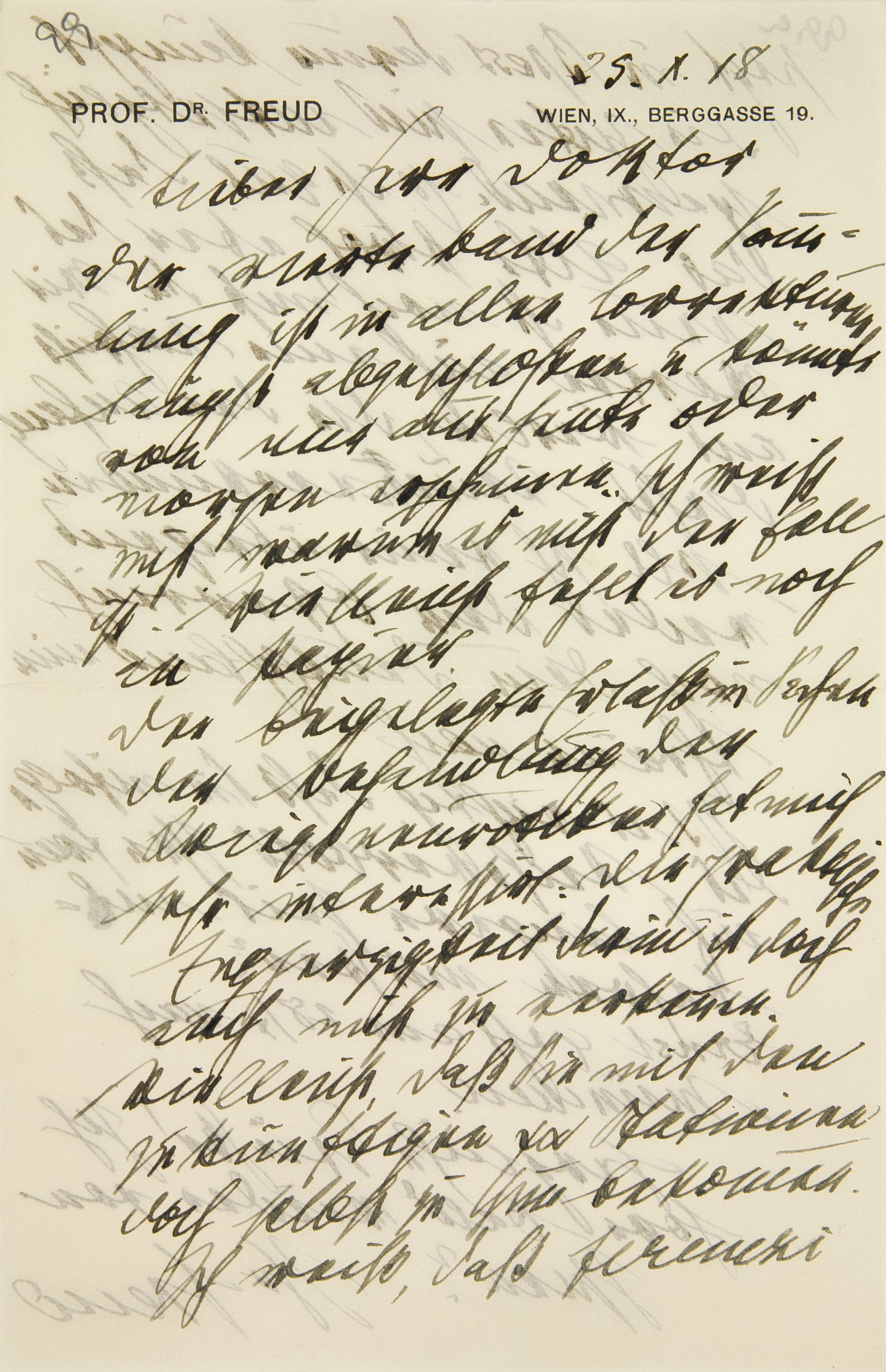 Der beigelegte Erlaß in Sachen der Behandlung der Kriegsneurotiker hat mich sehr interessiert. Die praktische Engherzigkeit darin ist doch auch nicht zu verkennen. Vielleicht, daß Sie mit den zukünftigen psychoanalytischen Stationen doch selbst zu tun bekommen. Ich weiß, daß Ferenczi jetzt in Budapest darum kämpft.1