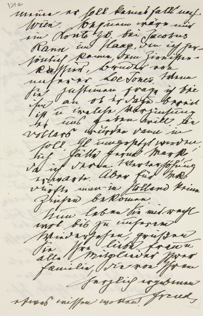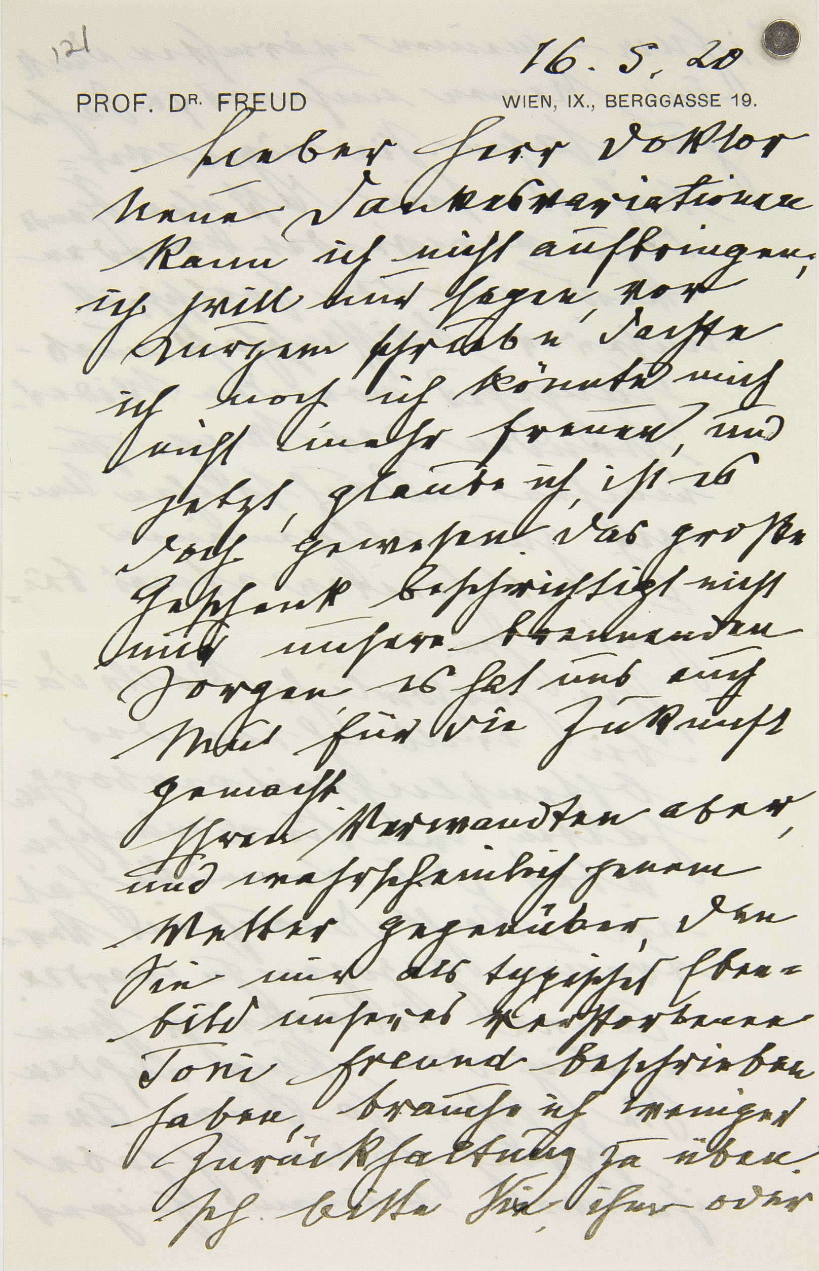 Ihren Verwandten aber und wahrscheinlich jenem Vetter gegenüber, den Sie mir als typisches Ebenbild unseres verstorbenen Toni Freund beschrieben haben,3 brauche ich weniger Zurückhaltung zu üben. Ich bitte Sie, ihm – oder ihnen – meinen wärmsten Dank im Namen unserer psychoanalytischen Sache zu sagen. Sie mögen versichert sein, daß ihre Spende dazu verwendet werden wird, um den Fortschritt unserer Wissenschaft unabhängiger von den Widerständen der Menge zu machen und auf solchemb Umweg zum allgemeinen Fortschreiten etwas beizutragen.