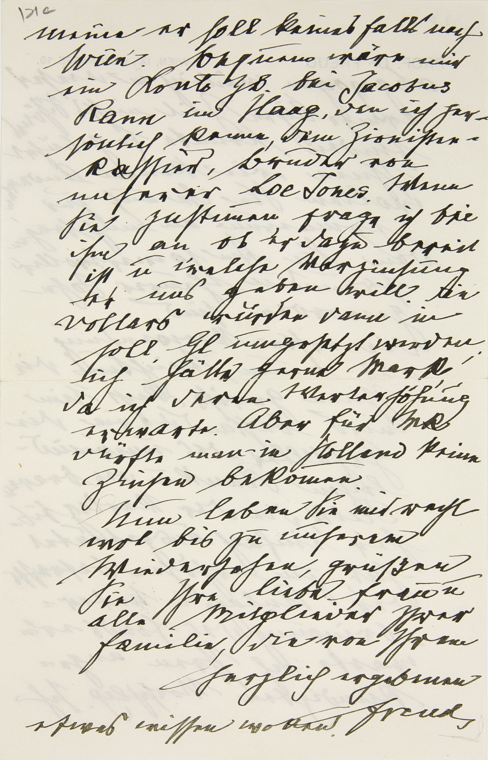 Die erste Verwendung des neuen Reichtums, die Ihnen gewiß recht sein wird, bestand darin, die Gehälter des unermüdlichen Rank und des braven Reik,5 die der Verlag bisher einfach ausgebeutet hat, zu erhöhen. Betreffs der Anlage und Unterbringung des Fonds erwarte ich Ihren angekündigten Vorschlag. Ich meine, er soll keinesfalls nach Wien. Bequem wäre mir ein Konto z. B. bei Jacobus Kann im Haag, den ich persönlich kenne, dem Zionistenkassier, Bruder von unserer Loe Jones.6 Wenn Sie zustimmen, frage ich bei ihm an, ob er dazu bereit ist und welche Verzinsung er uns geben will. Die Dollars würden dann in holländische Gulden umgesetzt werden; ich hätte gerne Mark, da ich deren Werterhöhung erwarte. Aber für Mark dürfte man in Holland keine Zinsen bekommen.
