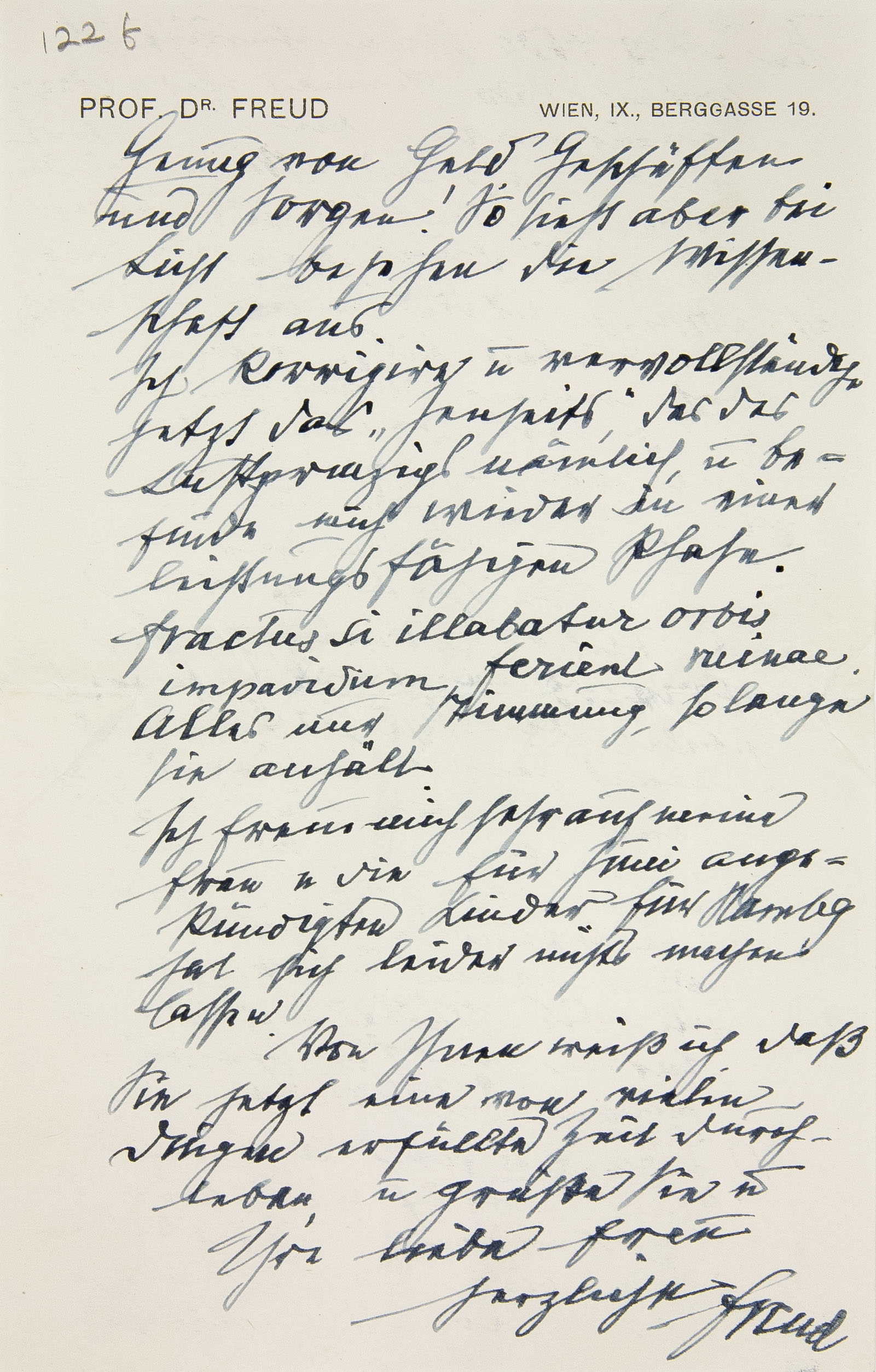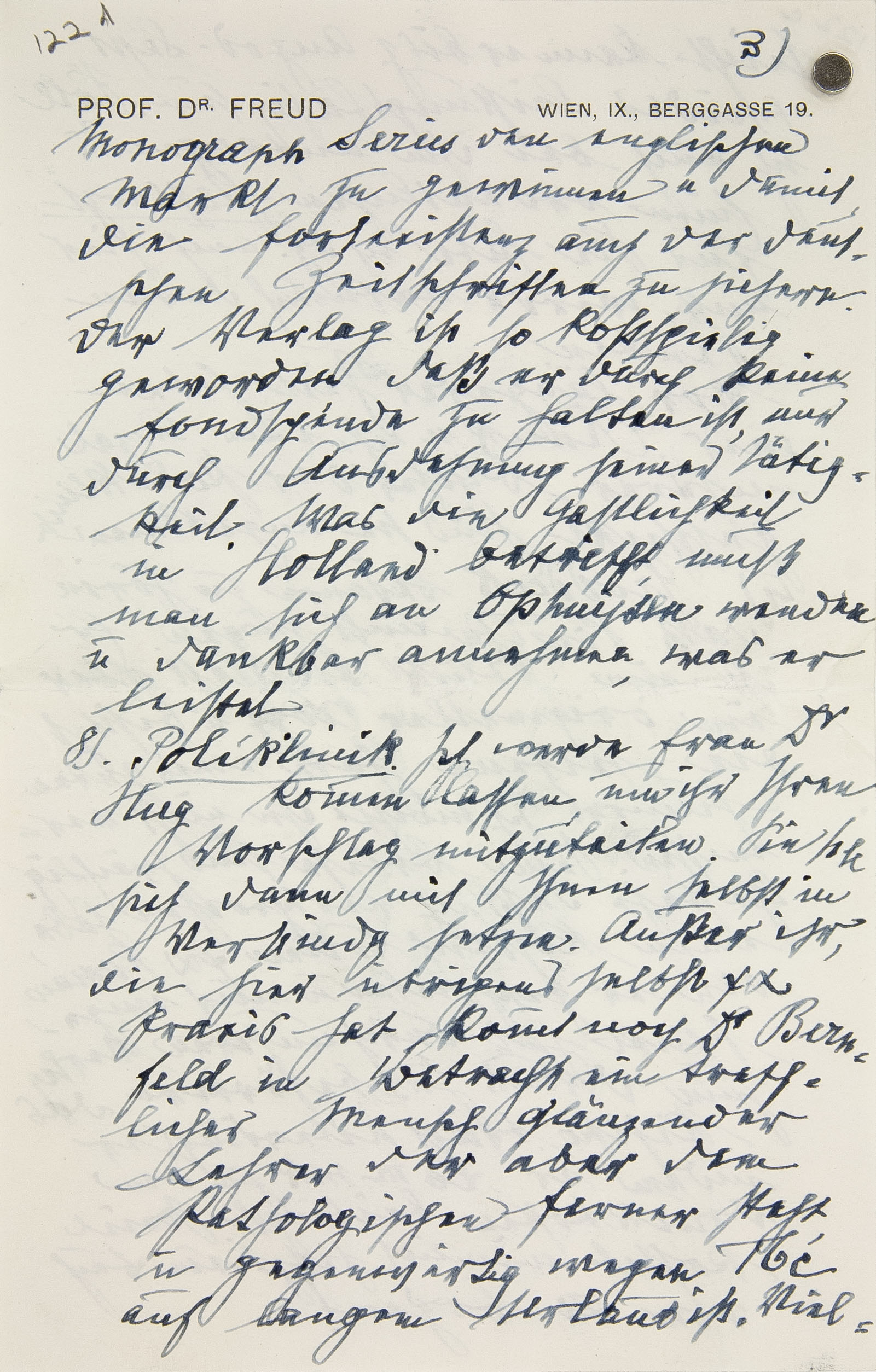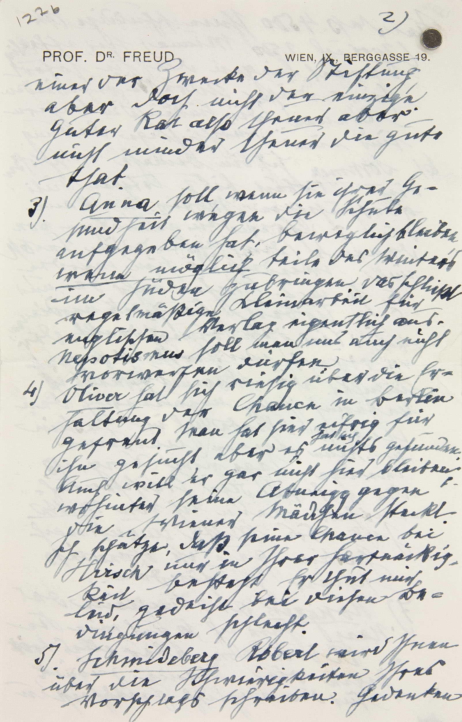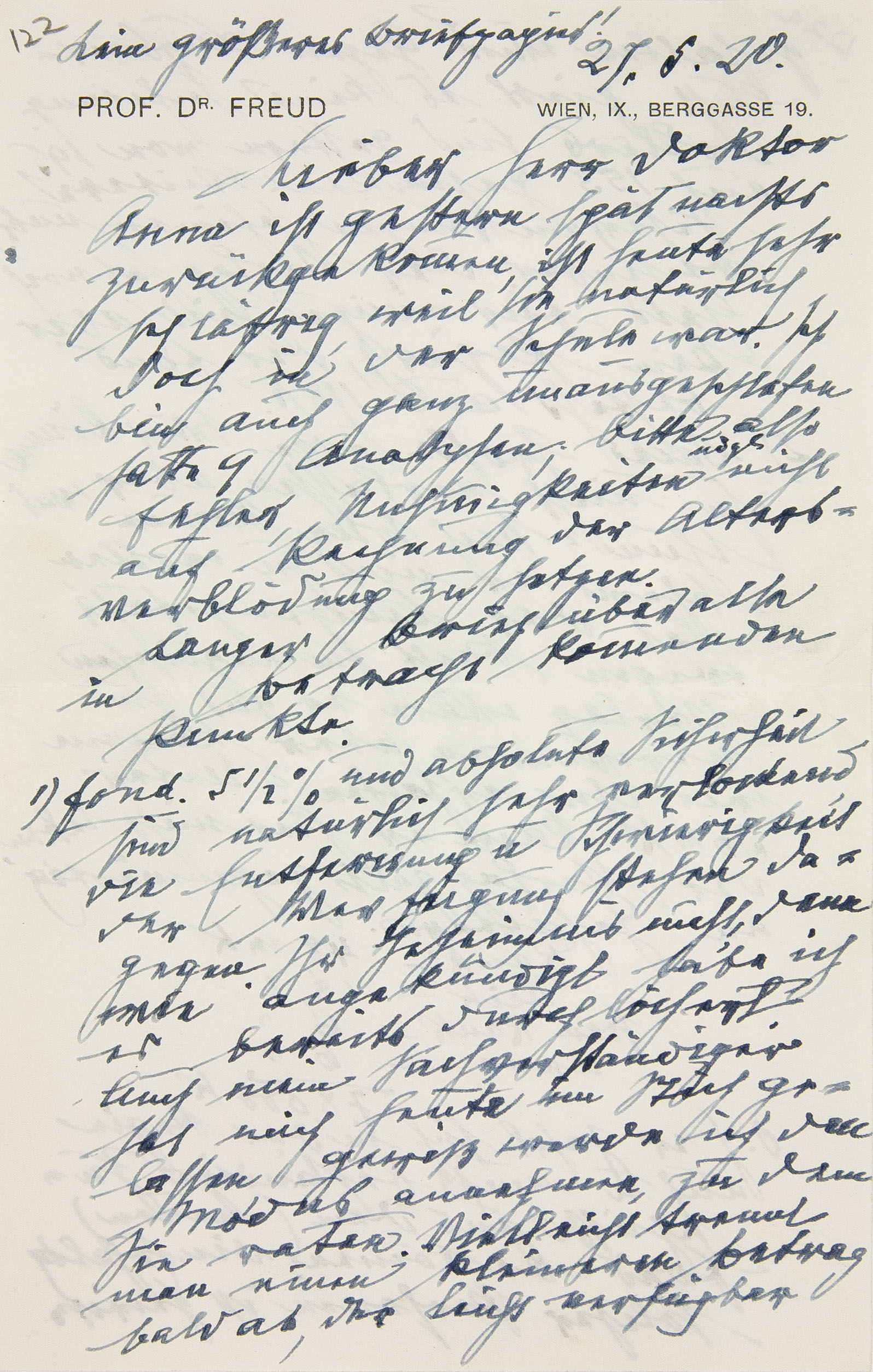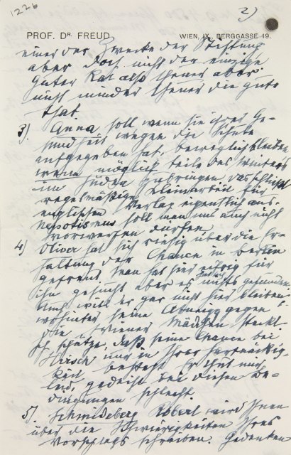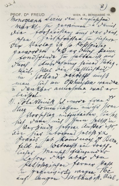 a Im MS über dem Briefkopf. Der Brief umfaßt vier (kleinformatige) Blätter, von denen Freud das zweite und dritte numeriert hat. – Verschickt als Eilbrief.