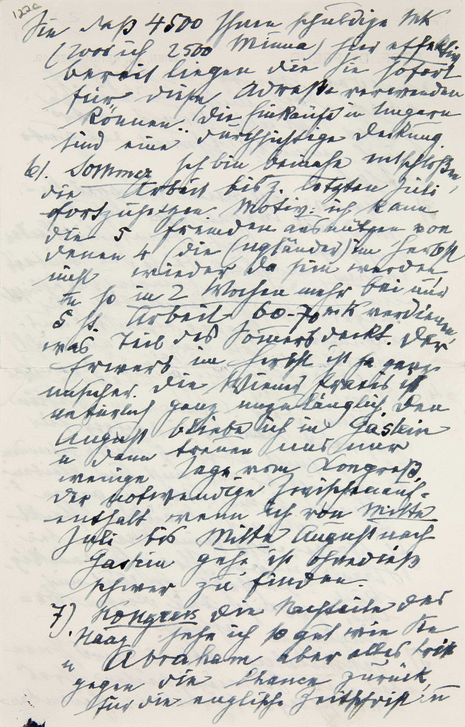 5. Schmideberg. Robert5 wird Ihnen über die Schwierigkeiten Ihres Vorschlags schreiben. Gedenken Sie, daß 4500 Ihnen schuldige Mark (2000 ich, 2500 Minna) hier effektiv bereit liegen, die Sie sofort für diese Adresse verwenden können!d Die Einkäufe in Ungarn sind eine durchsichtige Deckung.