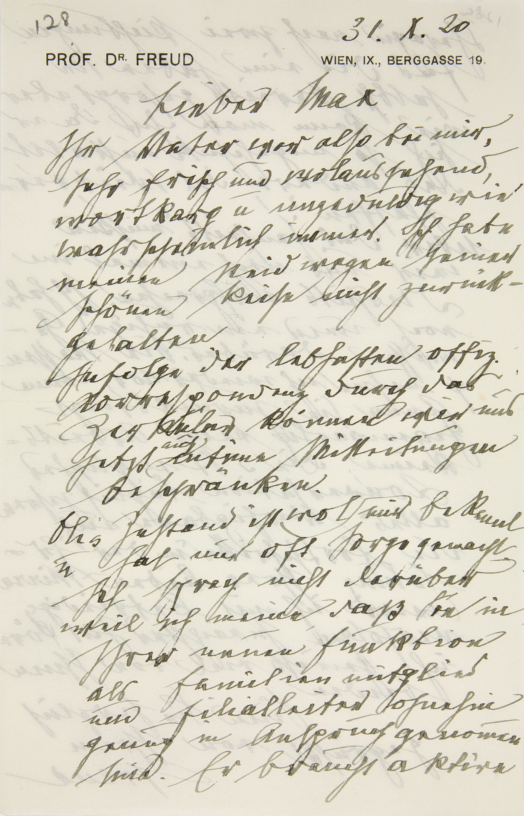 Über das ‚Jenseits‘ müssen wir uns noch einmal im Diesseits aussprechen. Ich habe noch immer ein ruhiges Gewissen darüber. Die ‚Massenpsychologie‘ nehme ich wieder vor, wenn Anna sie zurückbringt. Gegenwärtig keine Arbeitskeime. Die fünf Stunden englischer Konversation täglich5 zehren alles Verfügbare auf.