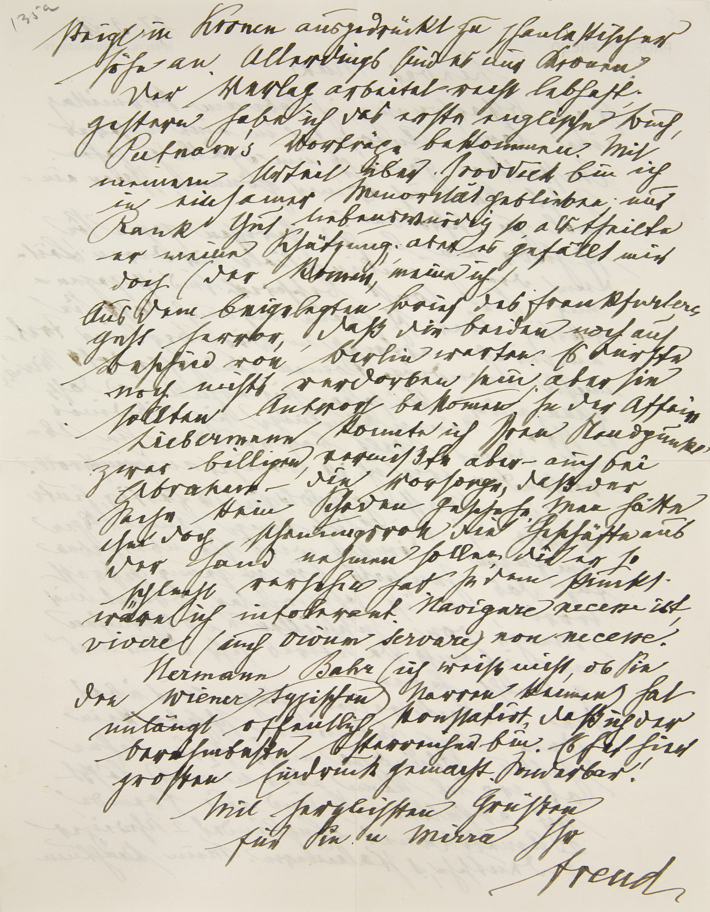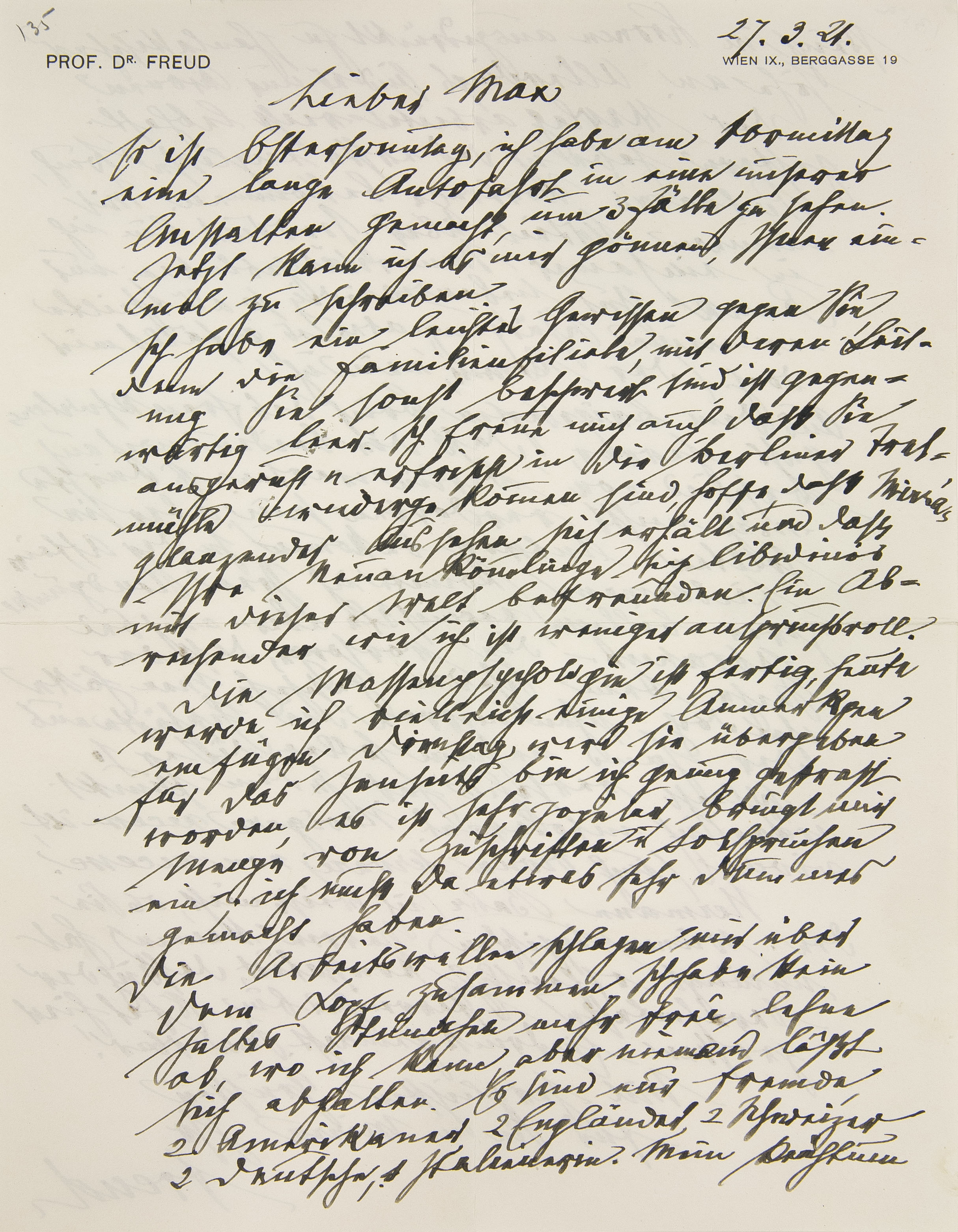 Die ‚Massenpsychologie‘ ist fertig, heute werde ich vielleicht einige Anmerkungen einfügen, Dienstag wird sie übergeben. Für das ‚Jenseits‘ bin ich genug gestraft worden, es ist sehr populär, bringt mir [eine] Menge von Zuschriften und Lobsprüchen ein; ich muß da etwas sehr Dummes gemacht haben.