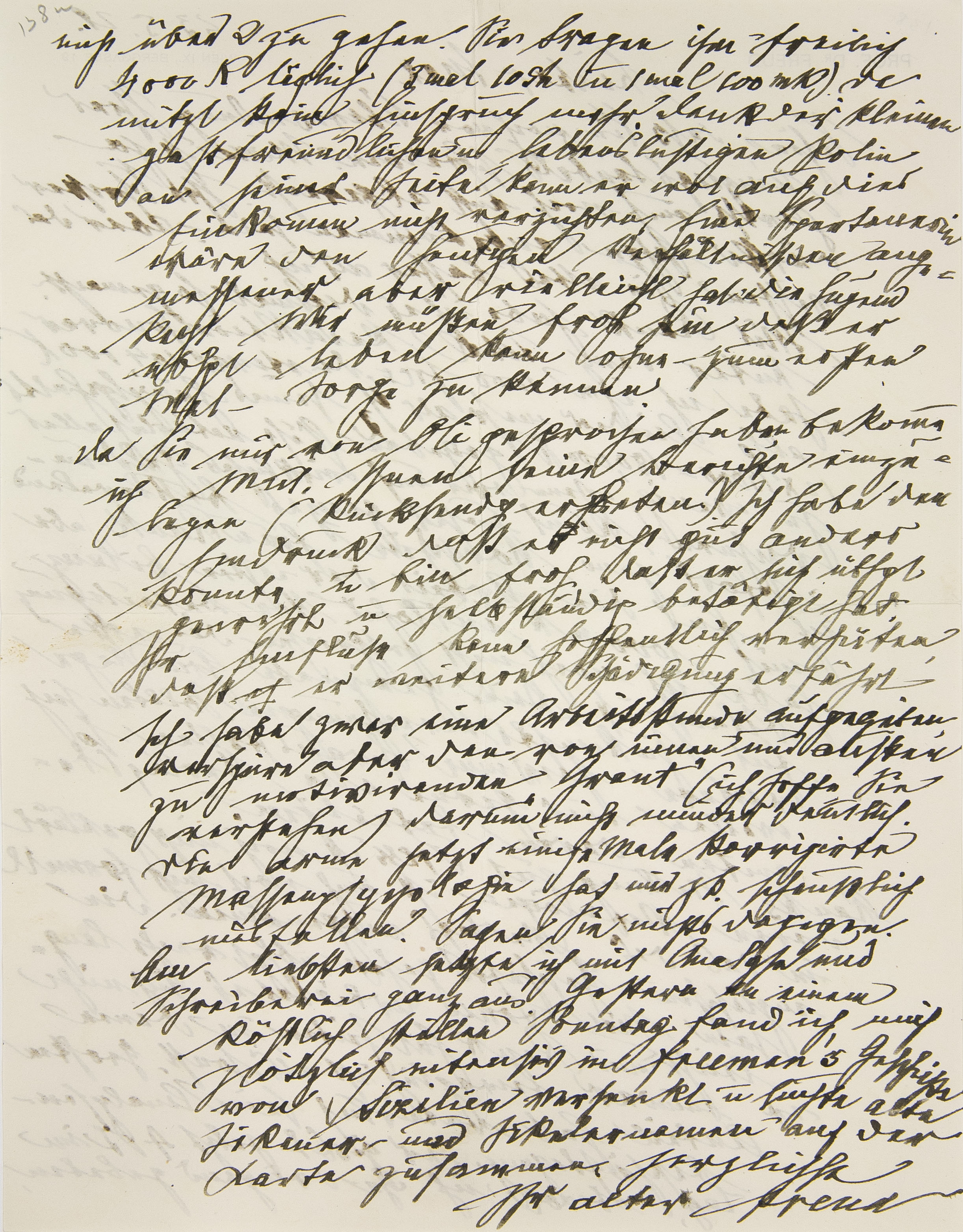 Ich habe zwar eine Arbeitsstunde aufgegeben, verspüre aber den von innen und außen zu motivierenden „Grant“5 (ich hoffe, Sie verstehen) darum nicht minder deutlich. Die arme, jetzt einige Male korrigierte ‚Massenpsychologie‘ hat mir z. B. scheußlich mißfallen. Sagen Sie nichts dagegen. Am liebsten setzte ich mit Analyse und Schreiberei ganz aus. Gestern an einem köstlich stillen Sonntag fand ich mich plötzlich intensiv in Freemans ‚Geschichte von Sizilien‘ versenkt und suchte alte Sikaner- und Sikulernamen6 auf der Karte zusammen. Herzlichst