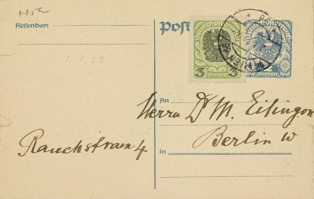 Sigmund Freud Papers: General Correspondence, 1871-1996; Eitingon, M.; From Freud; 1922; Jan.-June
