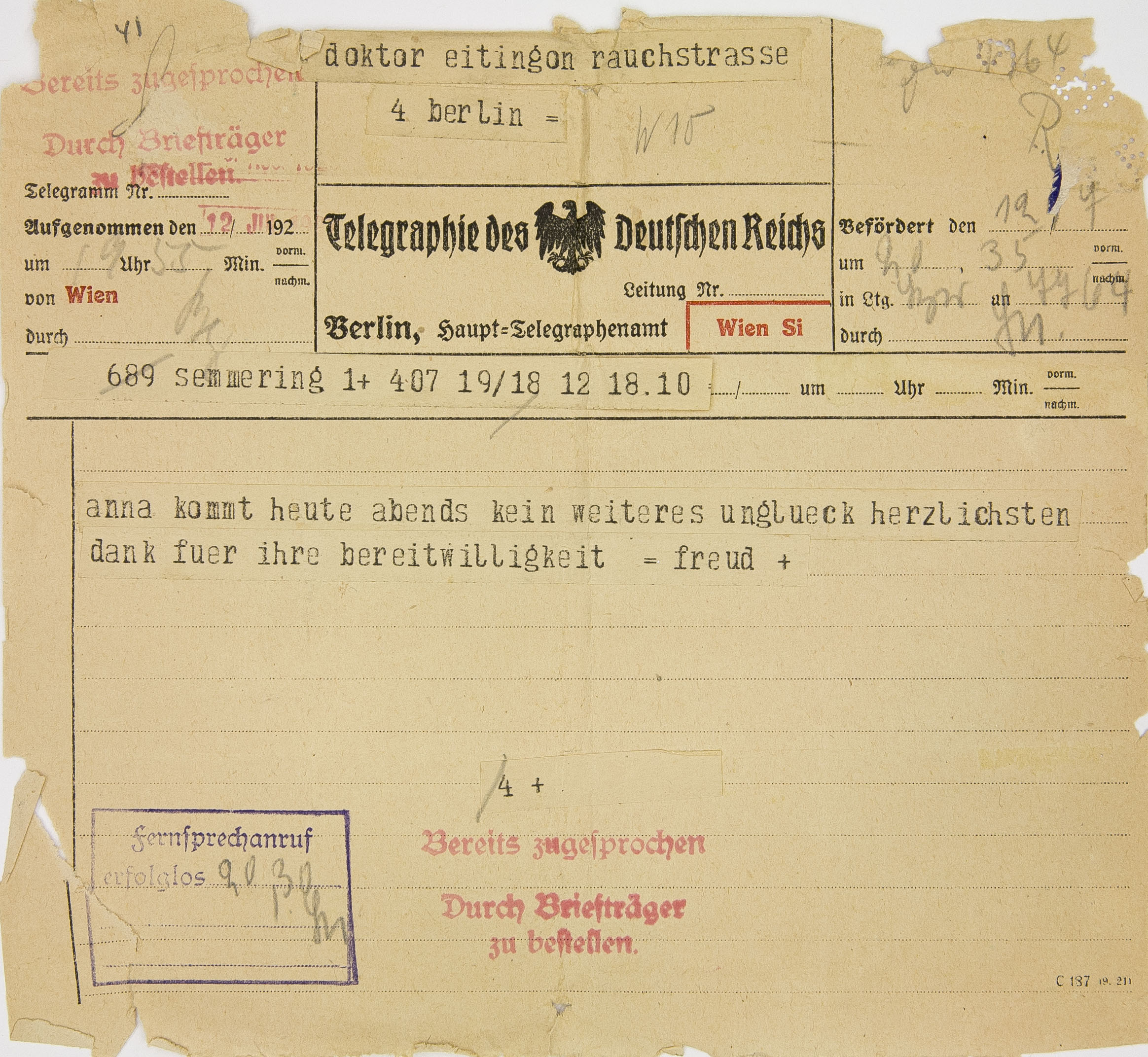 Sigmund Freud Papers: General Correspondence, 1871-1996; Eitingon, M.; From Freud; 1922; Jan.-June
