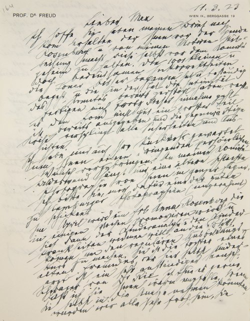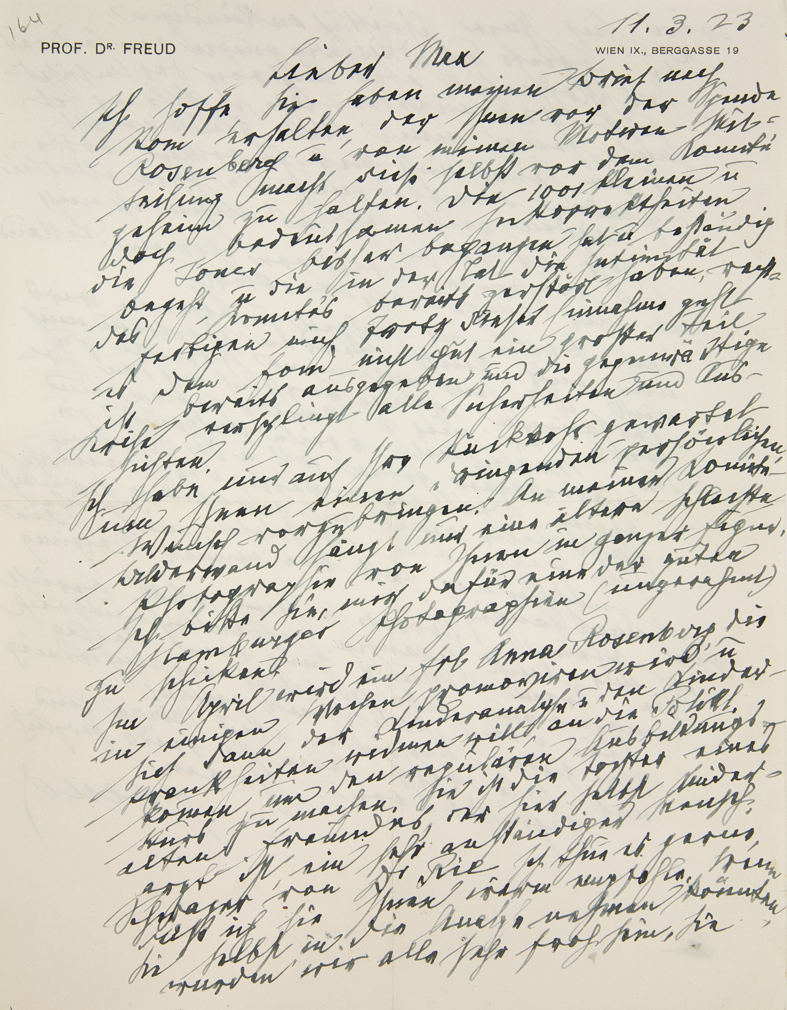 Im April wird ein Frl. Anna Rosenberg,2 die in einigen Wochen promovieren wird und sich dann der Kinderanalyse und den Kinderkrankheiten widmen will, an die Poliklinik kommen, um den regulären Ausbildungskurs zu machen. Sie ist die Tochter eines alten Freundes, der hier selbst Kinderarzt ist, ein sehr anständiger Mensch, Schwager von Dr. Rie. Ich tue es gerne, daß ich sie Ihnen warm empfehle. Wenn Sie [sie] selbst in die Analyse nehmen könnten, würden wir alle sehr froh sein. Sie wird sich Ihnen schriftlich ankündigen.