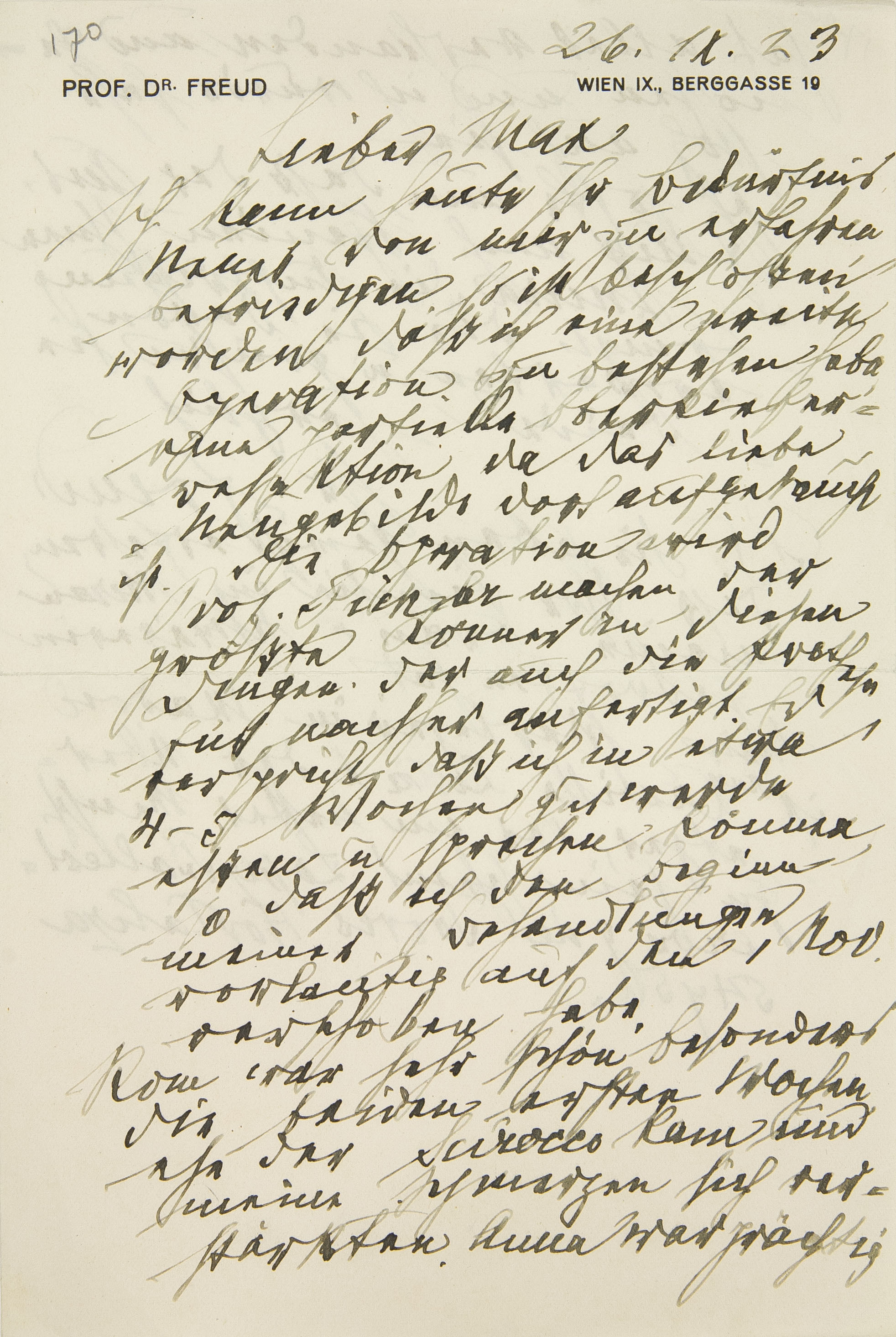 Ich kann heute Ihr Bedürfnis, Neues von mir zu erfahren, befriedigen. Es ist beschlossen worden, daß ich eine zweite Operation zu bestehen habe, eine partielle Oberkieferresektion, da das liebe Neugebilde dort aufgetaucht ist.1 Die Operation wird Prof. Pichler2 machen, der größte Könner in diesen Dingen, der auch die Prothese für nachher anfertigt. Er verspricht, daß ich in etwa 4-5 Wochen gut werde essen und sprechen können, so daß ich den Beginn meiner Behandlungen vorläufig auf den 1. Nov. verschoben habe.