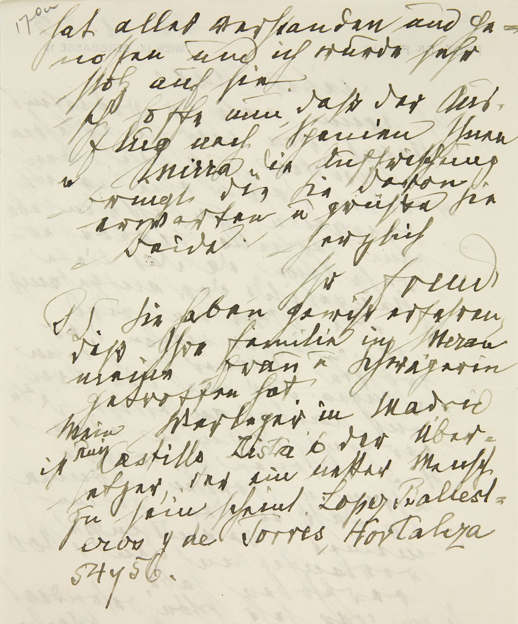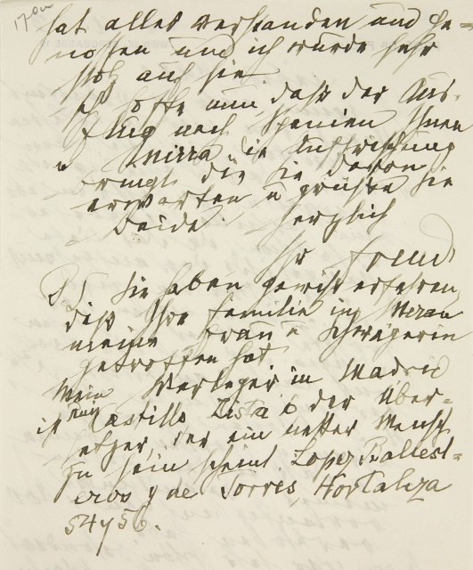 P. S. Sie haben gewiß erfahren, daß Ihre Familie in Meran meine Frau und Schwägerin getroffen hat.