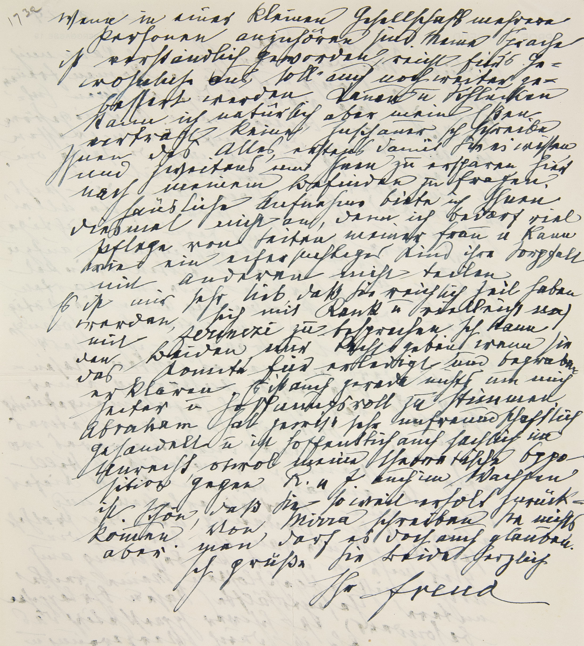 Endlich Nachricht von Ihnen!1 Ich kann mich nicht wie sonst auf Ihr Herkommen freuen, denn ich sehe voraus, daß es Ihnen Enttäuschungen bringen wird. Auch Sie gehören ja zu denen, die nichts davon wissen wollen, daß ich nicht mehr derselbe bin. Ich bin aber in Wirklichkeit müde und ruhbedürftig, schlage kaum die sechs Stunden Analyse heraus, halte alles weitere von mir fern. Das Richtige wäre, Arbeit und Verpflichtungen aufzugeben und in einem stillen Winkel auf das natürliche Ende zu warten. Aber die Versuchung, nein die Nötigung, noch etwas zu erwerben, solange man soviel verbraucht, ist zu stark.