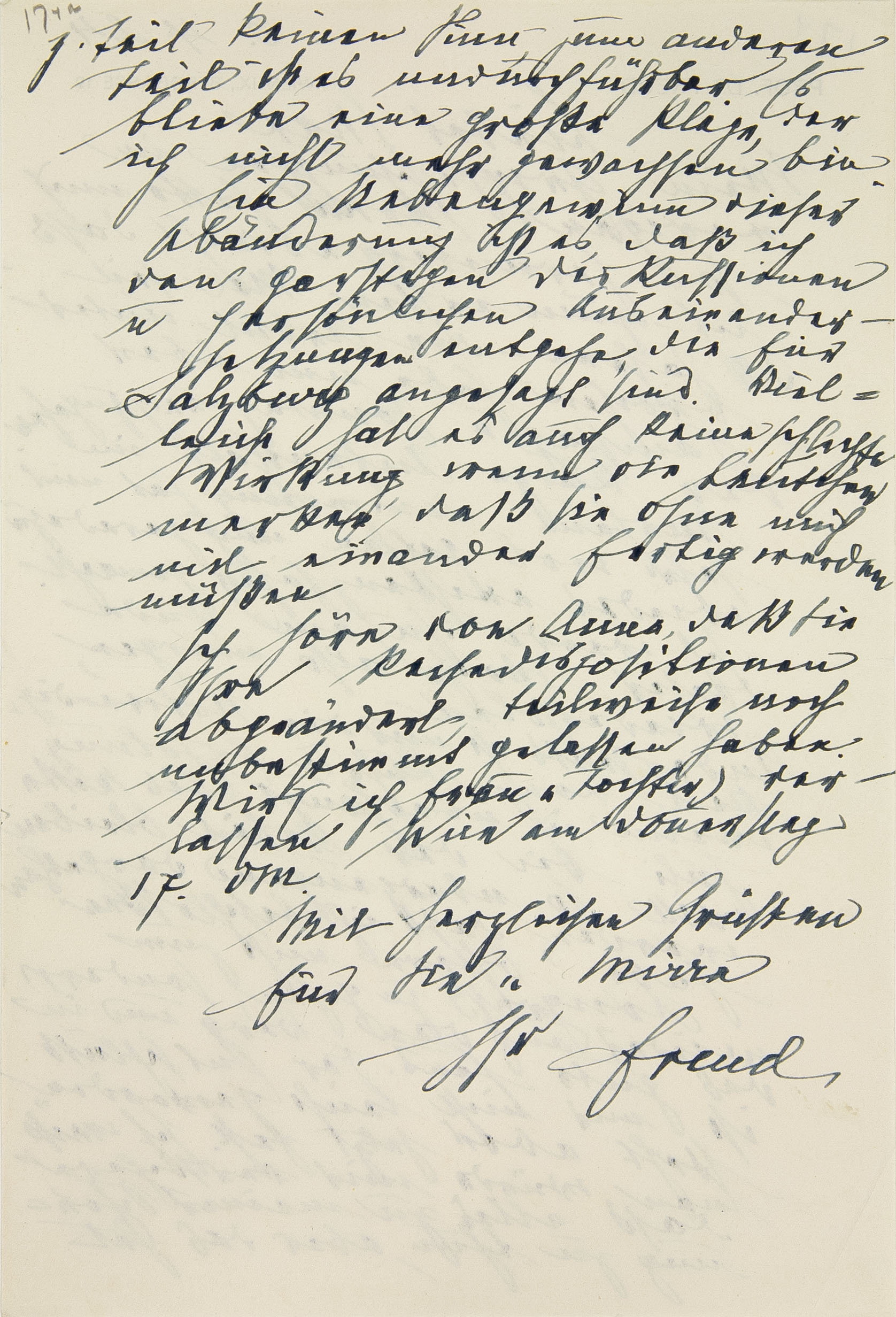 Ich höre von Anna, daß Sie Ihre Reisedispositionen abgeändert, teilweise noch unbestimmt gelassen haben. Wir (ich, Frau und Tochter) verlassen Wien am Donnerstag, 17. d. M.2