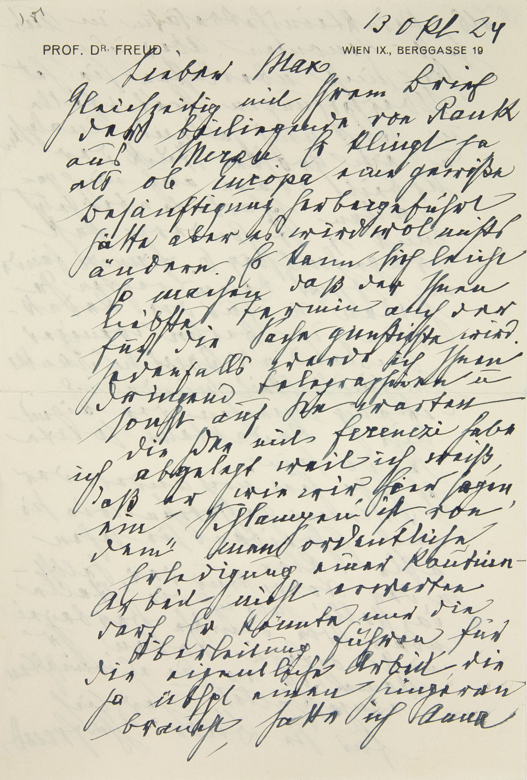Gleichzeitig mit Ihrem Brief der beiliegende von Rank aus Meran.1 Es klingt ja, als ob Europa eine gewisse Besänftigung herbeigeführt hätte, aber es wird wohl nichts ändern. Es kann sich leicht so machen, daß der Ihnen liebste Termin auch der für die Sache günstigste wird. Jedenfalls werde ich Ihnen dringend telegraphieren und sonst auf Sie warten.