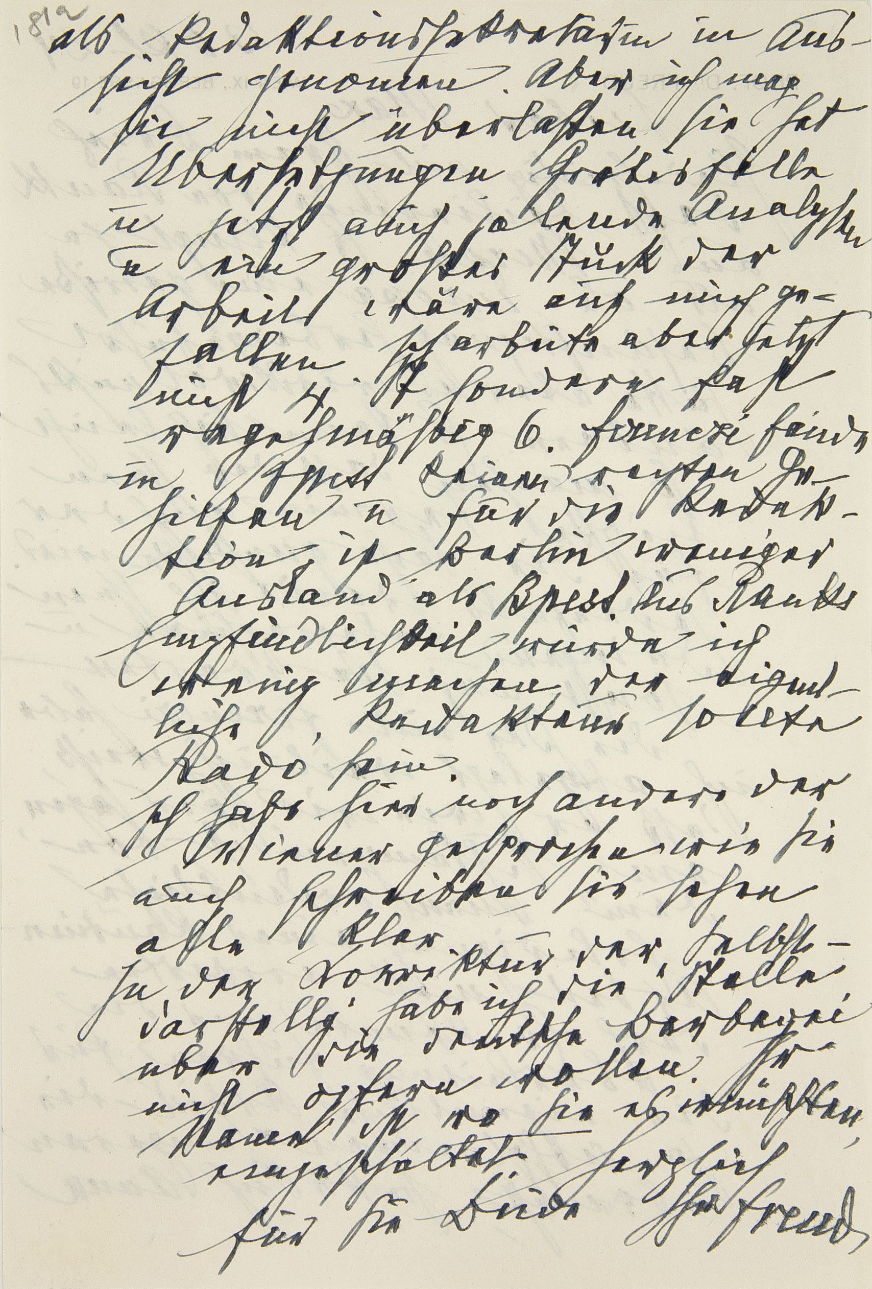 Die Idee mit Ferenczi habe ich abgelegt, weil ich weiß, daß er, wie wir hier sagen, ein „Schlampen“ ist, von dem man ordentliche Erledigung einer Routine-Arbeit nicht erwarten darf. Er könnte nur die Oberleitung führen, für die eigentliche Arbeit, die ja überhaupt einen Jüngeren braucht, hatte ich Anna als Redaktionssekretärin in Aussicht genommen. Aber ich mag sie nicht überlasten, sie hat Übersetzungen, Gratisfälle und jetzt auch zahlende Analysen, und ein großes Stück der Arbeit wäre auf mich gefallen. Ich arbeite aber jetzt nicht vier Stunden, sondern fast regelmäßig sechs. Ferenczi fände in Budapest keinen rechten Gehilfen, und für die Redaktion ist Berlin weniger Ausland als Budapest. Aus Ranks Empfindlichkeit würde ich wenig machen, der eigentliche Redakteur sollte Radó sein.