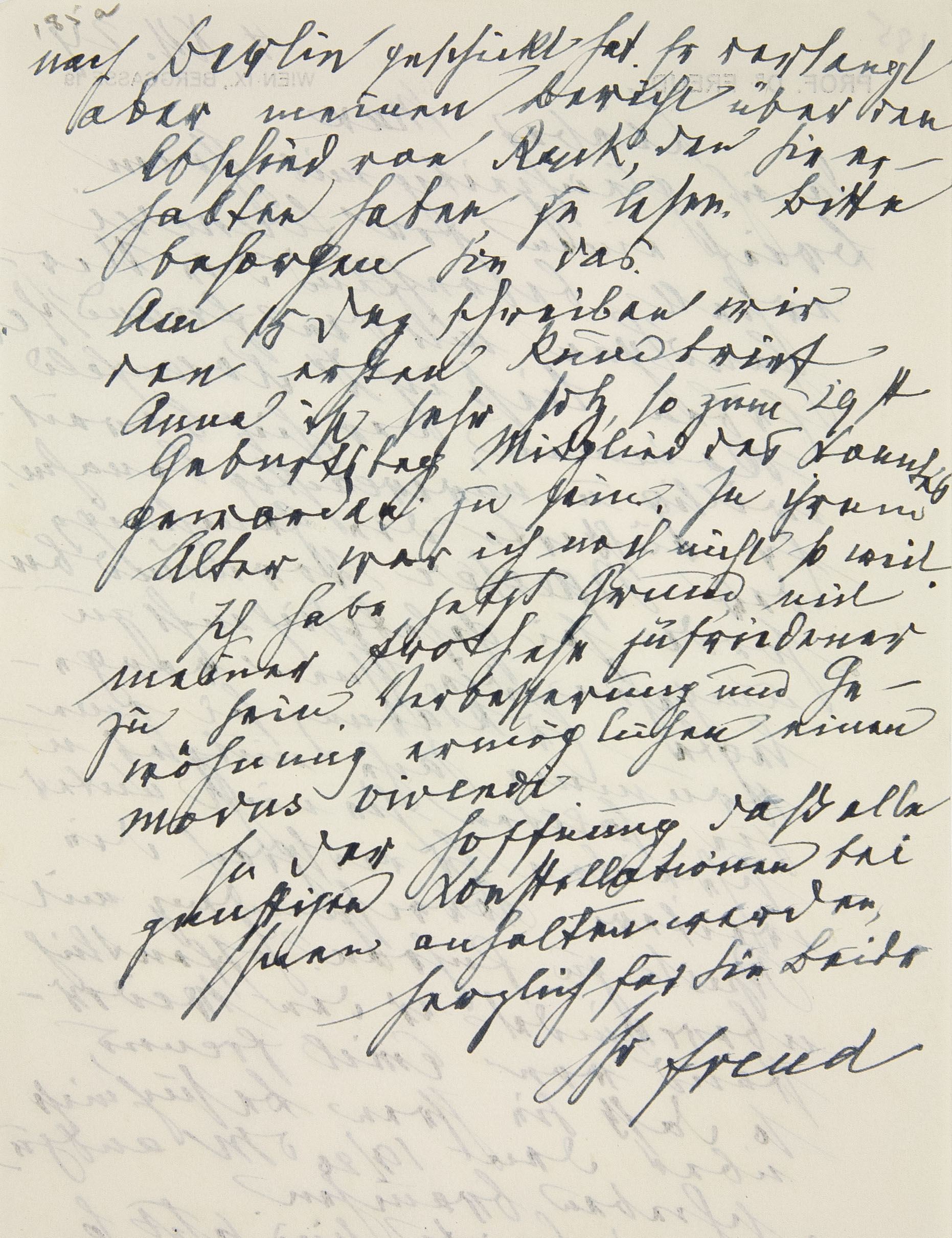 Ferenczis Briefe sind jetzt so selten und unzureichend. Ich kann von ihm nicht erfahren, ob er den Brillschen Brief nach Berlin geschickt hat. Er verlangt aber, meinen Bericht über den Abschied von Rank, den Sie erhalten haben, zu lesen. Bitte besorgen Sie das.