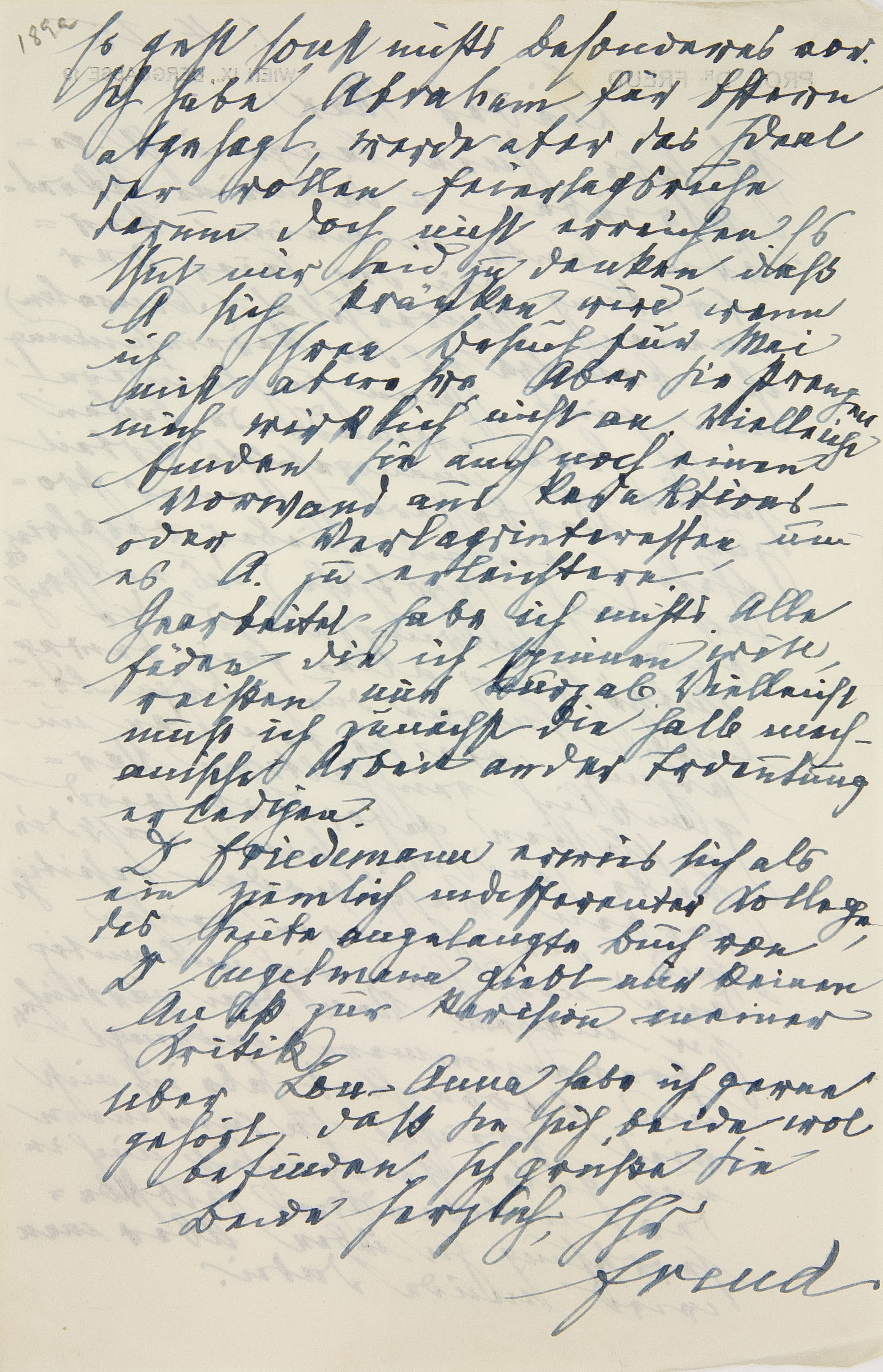 Es geht sonst nichts Besonderes vor. Ich habe Abraham für Ostern abgesagt, werde aber das Ideal der vollen Feiertagsruhe darum doch nicht erreichen. Es tut mir leid zu denken, daß A. sich kränken wird, wenn ich Ihren Besuch für Mai nicht abwehre. Aber Sie strengen mich wirklich nicht an. Vielleicht finden Sie auch noch einen Vorwand aus Redaktions- oder Verlagsinteressen, um es A. zu erleichtern.