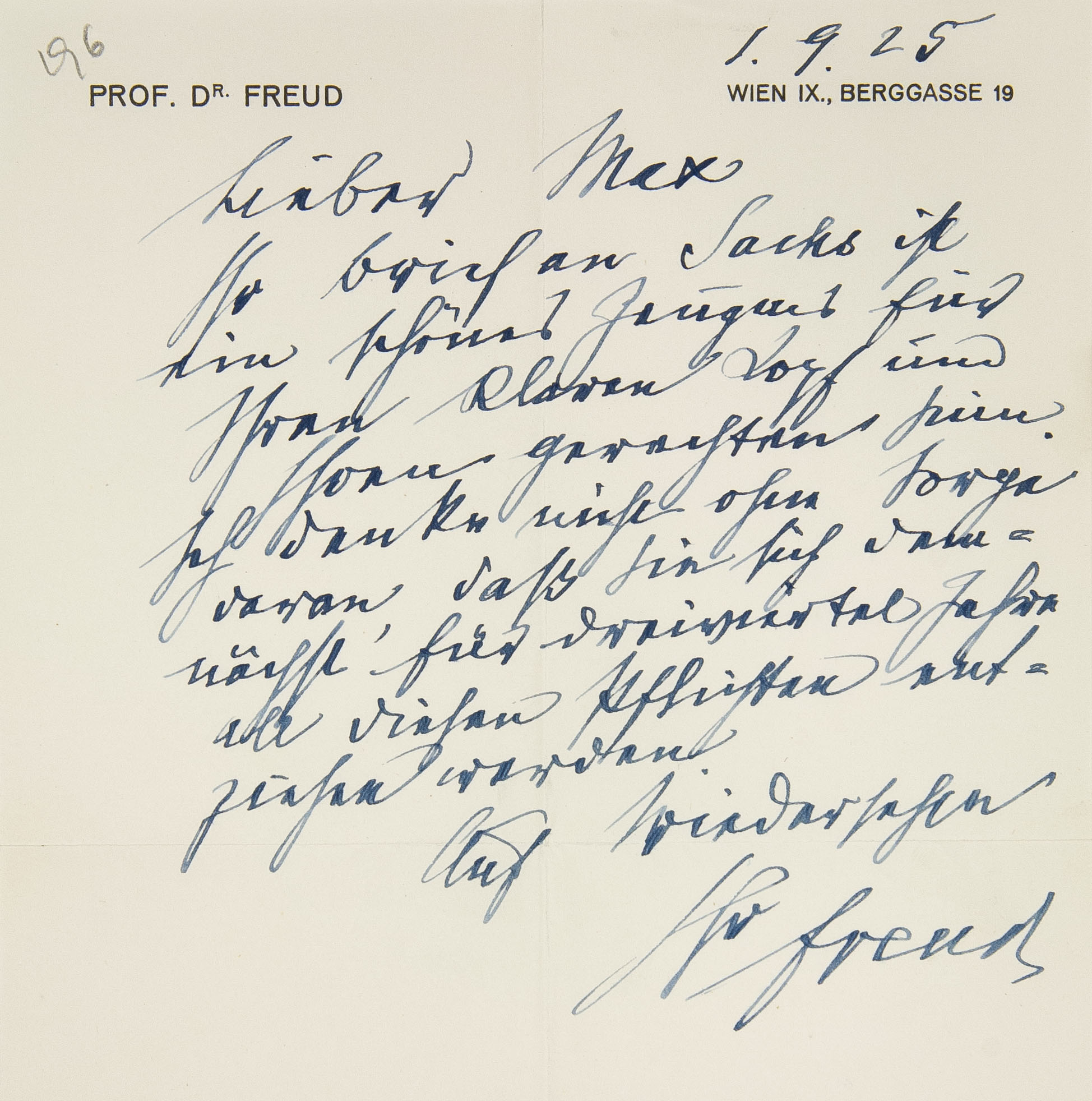 a Der zugehörige Briefumschlag (von Eitingon vermutlich um 1940 auf 1. 9. 25 datiert) trägt lediglich die Aufschrift: Max.