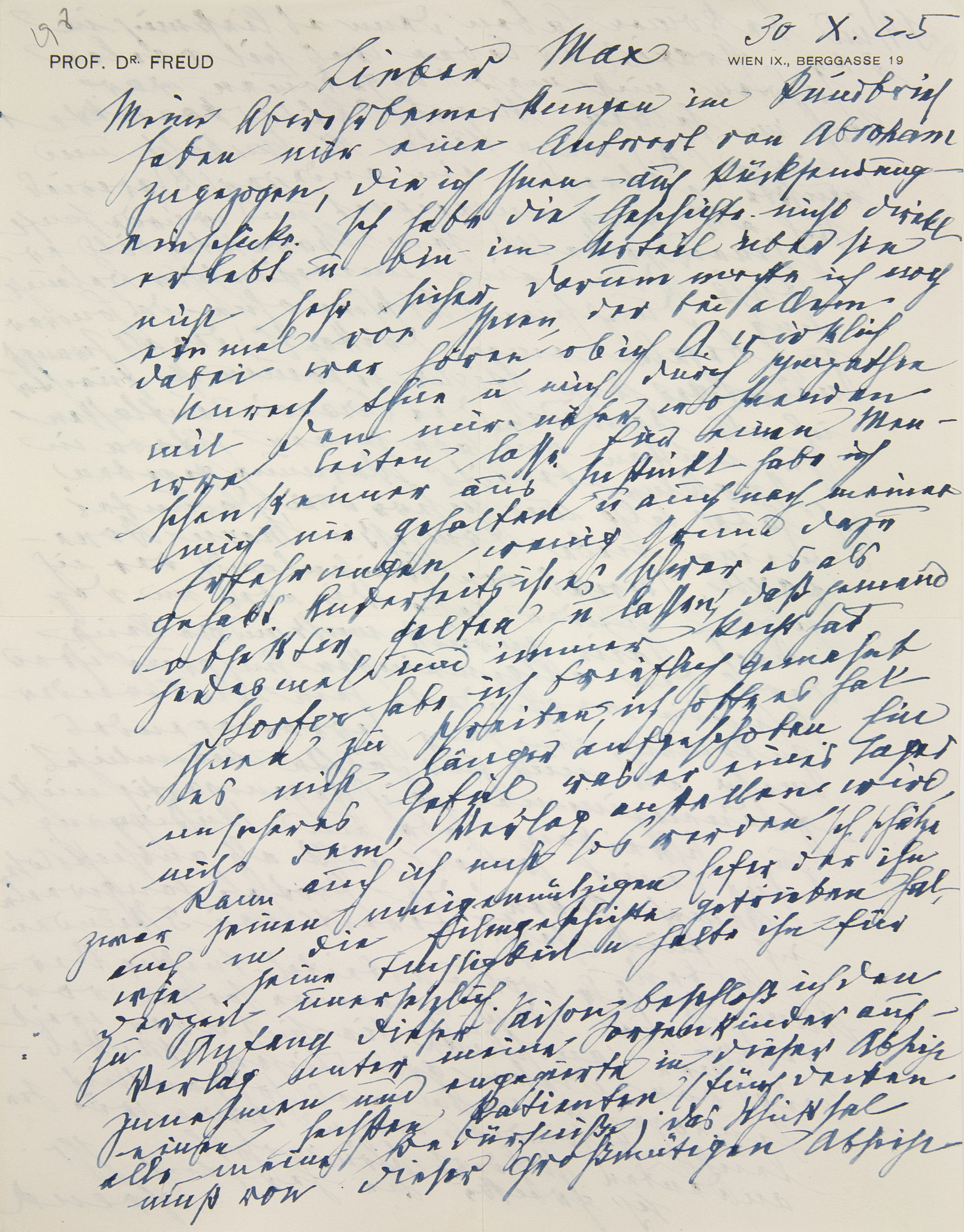 Meine Abwehrbemerkungen im Rundbrief haben mir eine Antwort von Abraham zugezogen, die ich Ihnen – auf Rücksendung – einschicke.1 Ich habe die Geschichte nicht direkt erlebt und bin im Urteil über sie nicht sehr sicher. Darum möchte ich noch einmal von Ihnen, der bei allem dabei war, hören, ob ich A. wirklich Unrecht tue und mich durch Sympathie mit den mir näher Wohnenden irreleiten lasse. Für einen Menschenkenner aus Instinkt habe ich mich nie gehalten und auch nach meinen Erfahrungen wenig Grund dazu gehabt. Anderseits ist es schwer, es als objektiv gelten zu lassen, daß jemand jedesmal und immer recht hat.2
