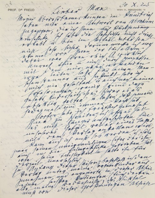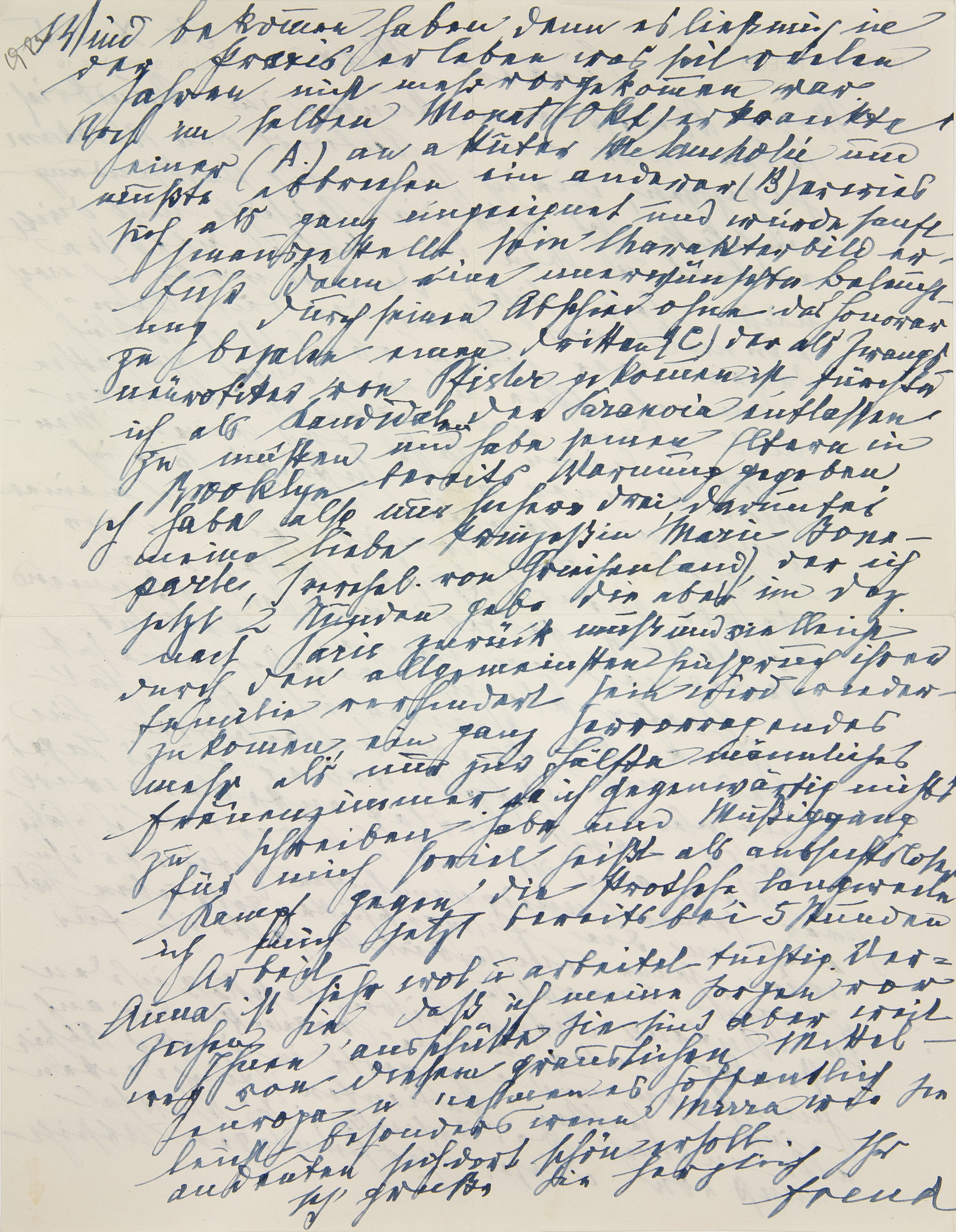 Ich habe also nur sichere drei, darunter meine liebe Prinzessin Marie Bonaparte (verehel. von Griechenland),5 der ich jetzt zwei Stunden gebe, die aber im Dezember nach Paris zurück muß und vielleicht durch den allgemeinsten Einspruch ihrer Familie verhindert sein wird wiederzukommen, ein ganz hervorragendes, mehr als nur zur Hälfte männliches Frauenzimmer. Da ich gegenwärtig nichts zu schreiben habe und Müßiggang für mich soviel heißt als aussichtsloser Kampf gegen die Prothese, langweile ich mich jetzt bereits bei fünf Stunden Arbeit.