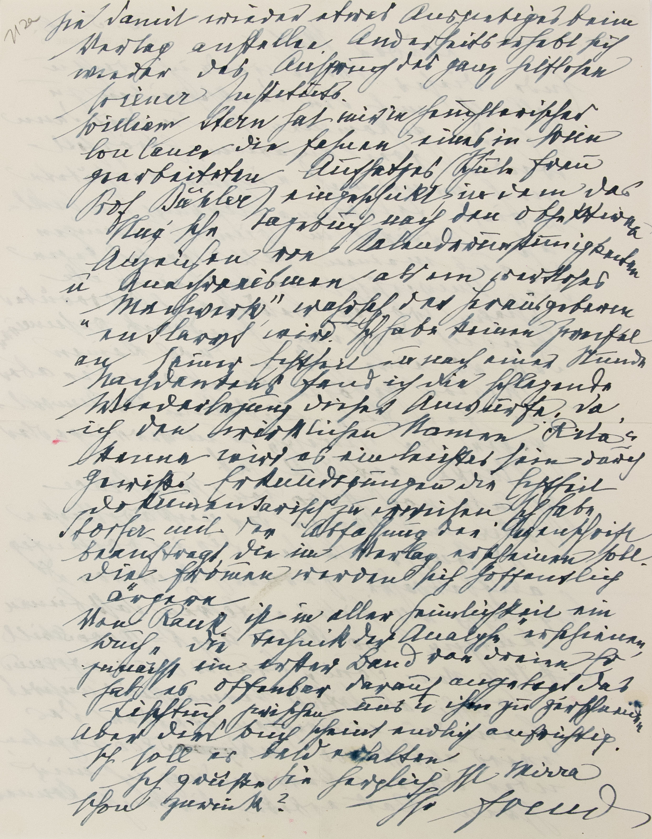 William Stern hat mir in heuchlerischer Coulance die Fahnen eines in Wien gearbeiteten Aufsatzes (Schule Frau Prof. Bühler) eingeschickt, in dem das Hugsche ‚Tagebuch‘ nach den objektiven Anzeichen von Kalenderunstimmigkeiten und Anachronismen als ein wertloses „Machwerk“, wahrscheinlich der Herausgeberin, entlarvt wird.5 Ich habe keinen Zweifel an seiner Echtheit, und nach einer Stunde Nachdenkens fand ich die schlagende Widerlegung dieser Anwürfe: Da ich den wirklichen Namen Ritas6 kenne, wird es ein Leichtes sein, durch gewisse Erkundigungen die Echtheit dokumentarisch zu erweisen. Ich habe Storfer mit der Abfassung der Gegenschrift beauftragt, die im Verlag erscheinen soll.7 Die Frommen werden sich hoffentlich ärgern.