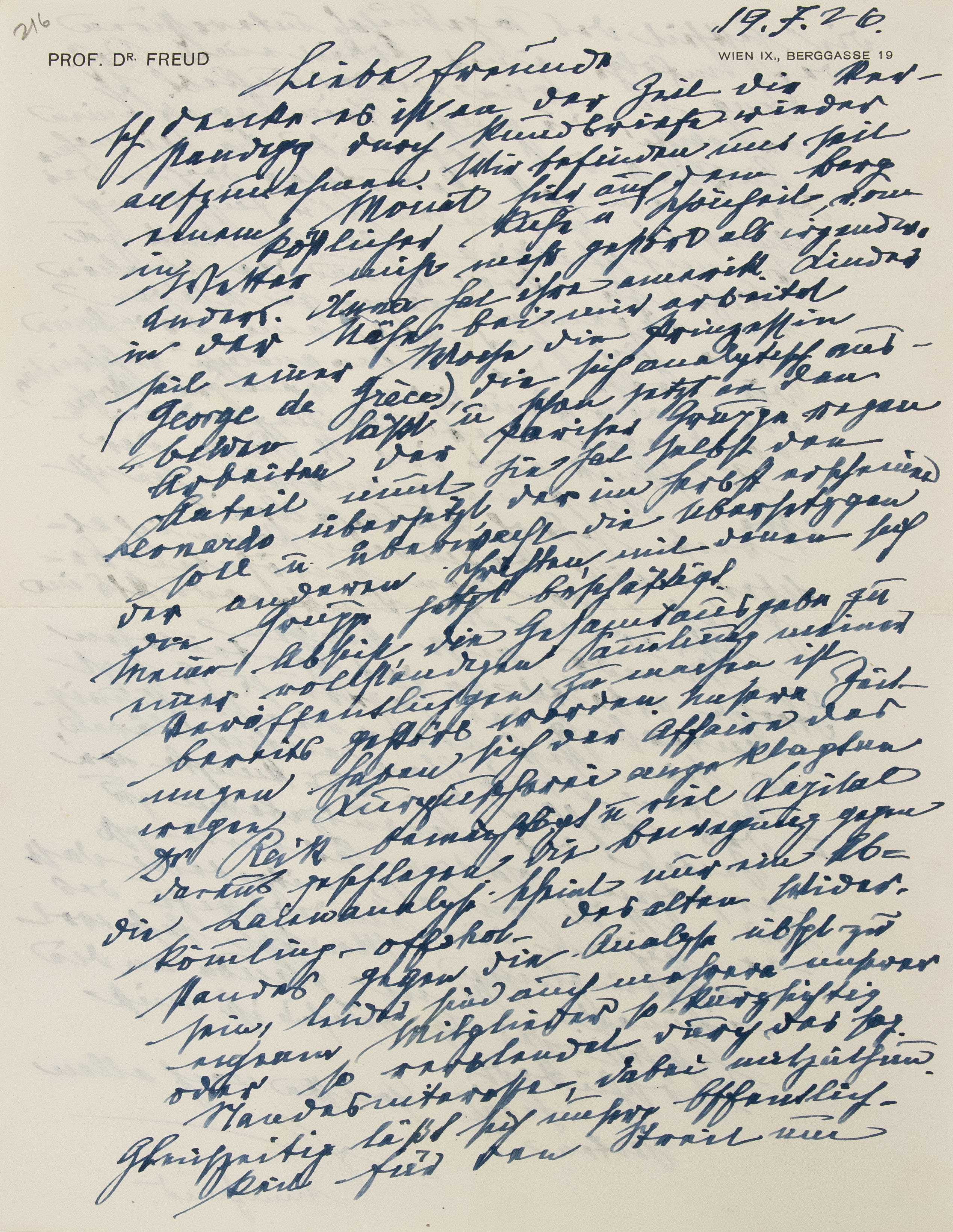 Sigmund Freud Papers: General Correspondence, 1871-1996; Eitingon, M.; From Freud; 1926; Jan.-July