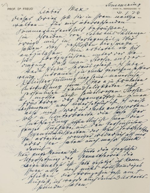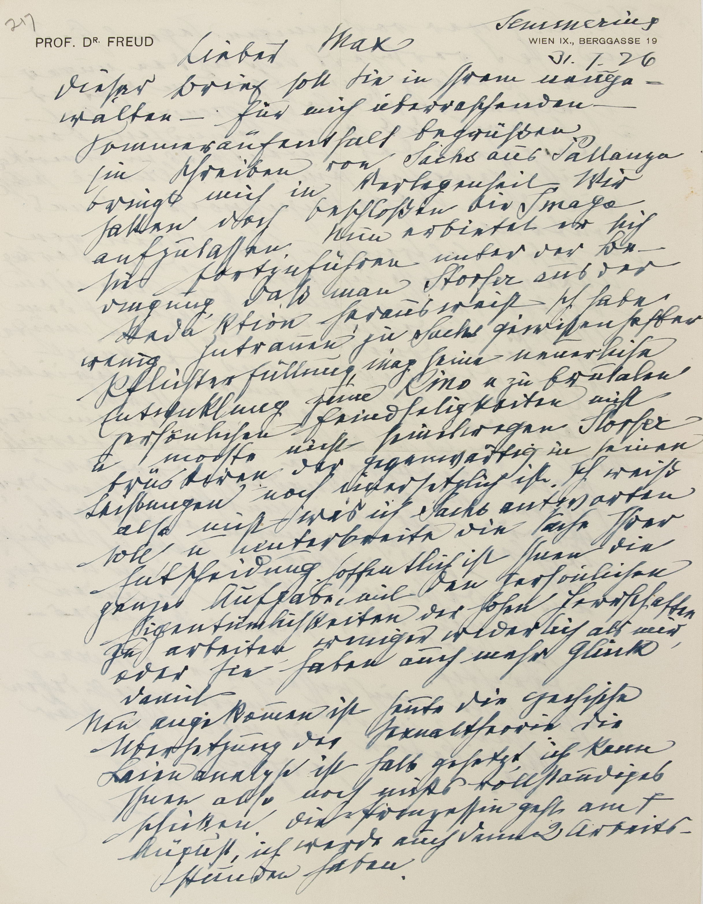 Sigmund Freud Papers: General Correspondence, 1871-1996; Eitingon, M.; From Freud; 1926; Jan.-July