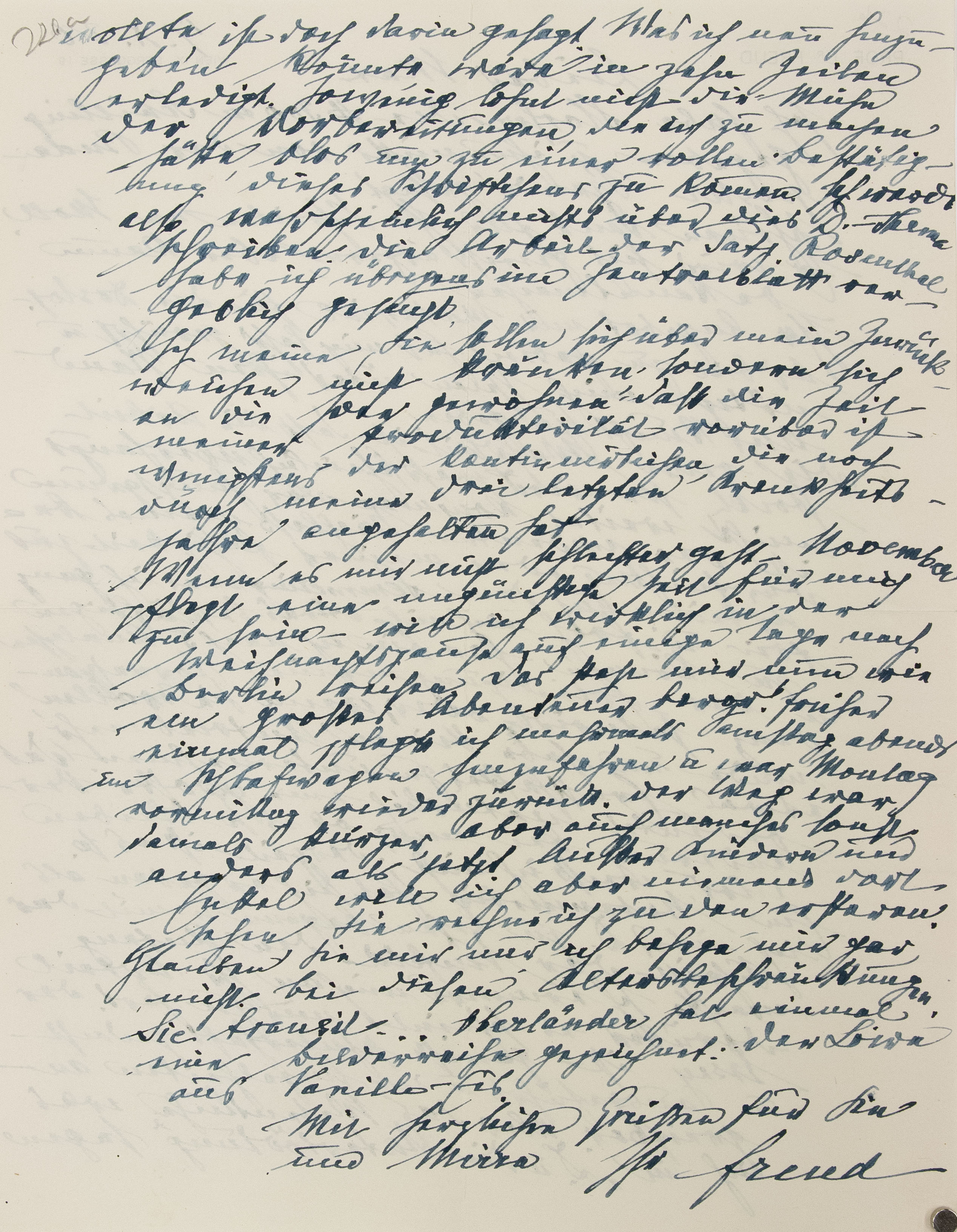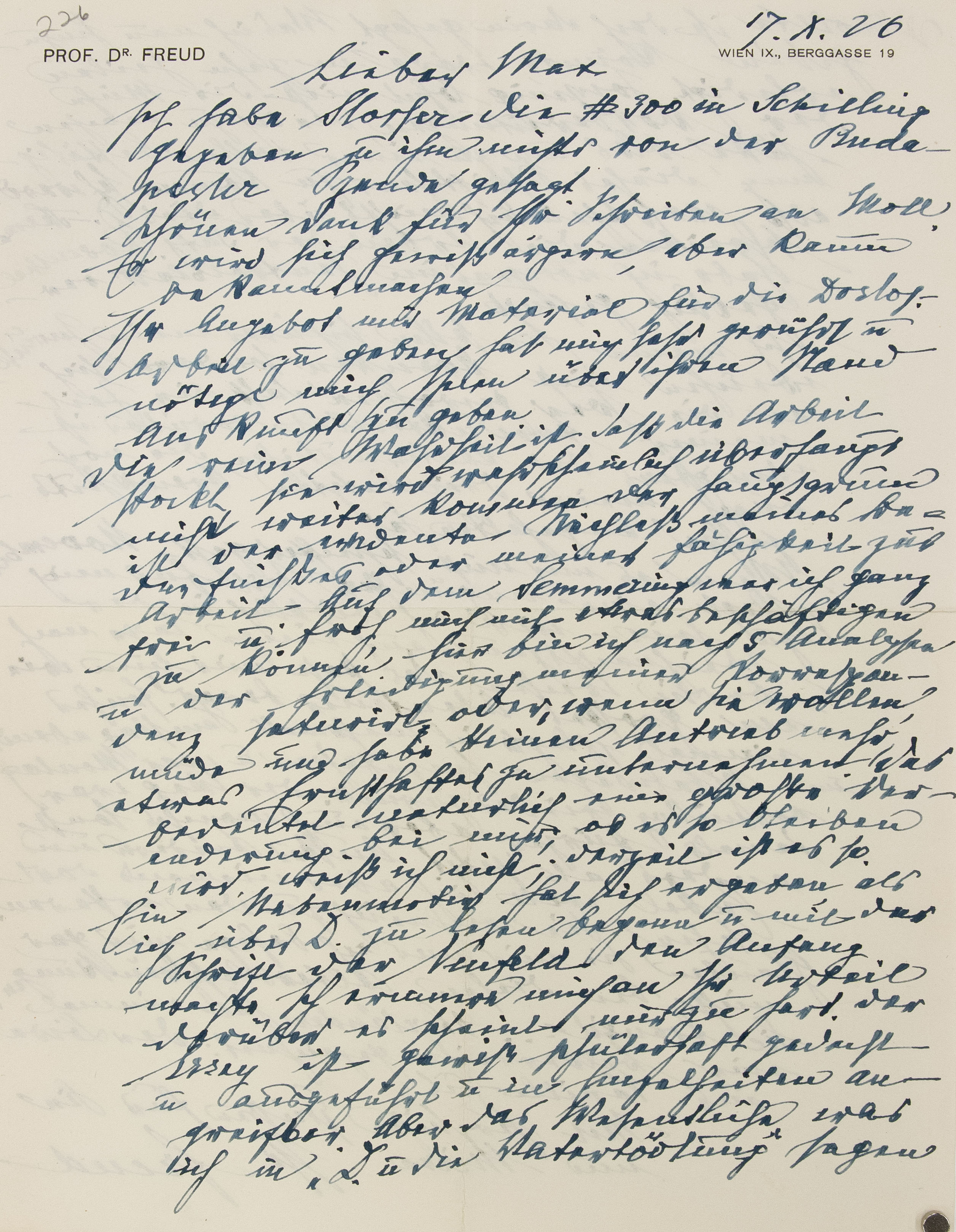 Die reine Wahrheit ist, daß die Arbeit stockt, sie wird wahrscheinlich überhaupt nicht weiterkommen. Der Hauptgrund ist der evidente Nachlaß meines Bedürfnisses oder meiner Fähigkeit zur Arbeit. Auf dem Semmering war ich ganz frei und froh, mich mit etwas beschäftigen zu können. Hier bin ich nach fünf Analysen und der Erledigung meiner Korrespondenz saturiert oder, wenn Sie wollen, müde und habe keinen Antrieb mehr, etwas Ernsthaftes zu unternehmen. Das bedeutet natürlich eine große Veränderung bei mir; ob es so bleiben wird, weiß ich nicht; derzeit ist es so.