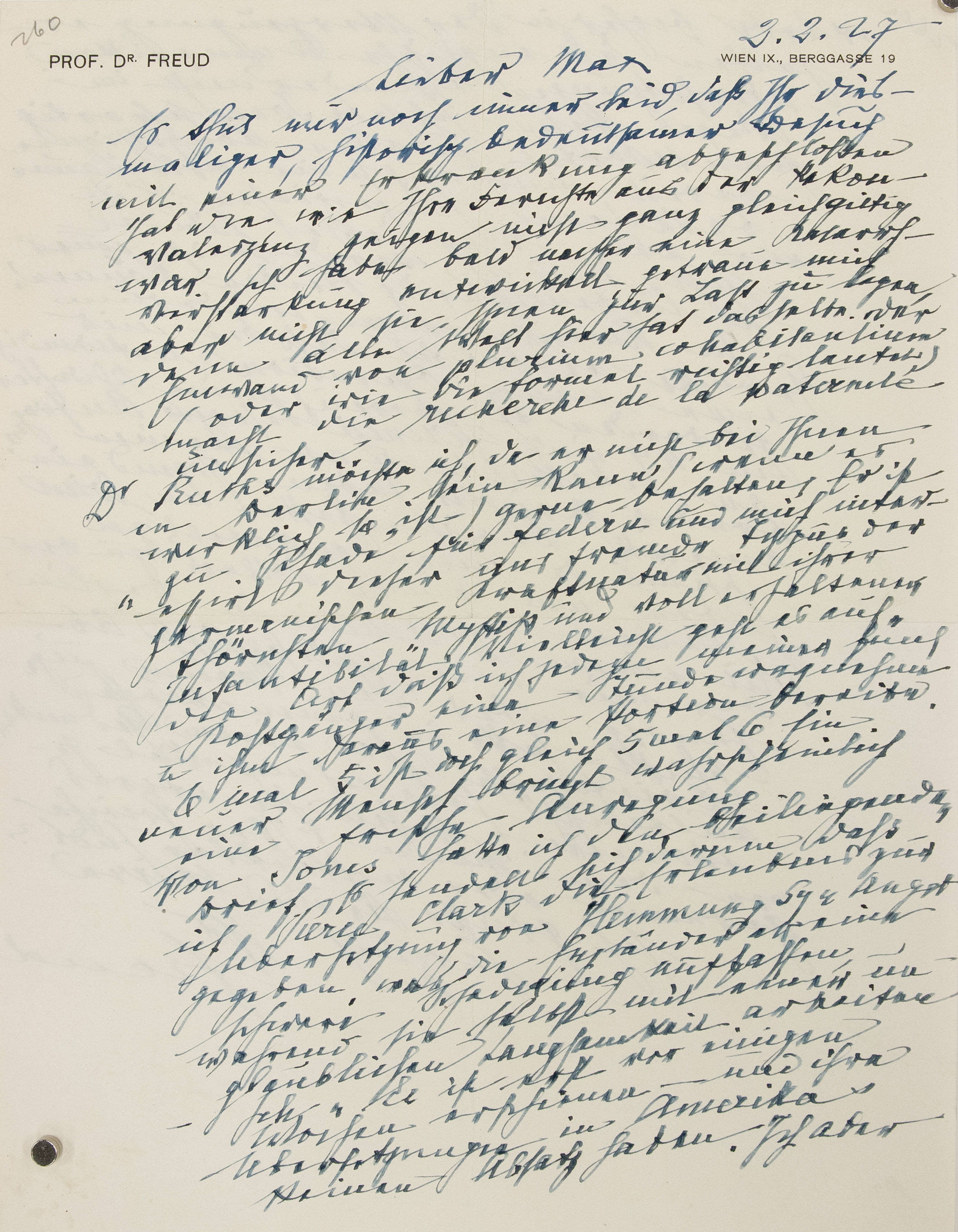 Von Jones hatte ich den beiliegenden Brief.7 Es handelt sich darum, daß ich Pierce Clark8 die Erlaubnis zur Übersetzung von ‚Hemmung, Symptom und Angst‘ gegeben, was die Engländer als eine schwere Schädigung auffassen, während sie selbst mit einer unglaublichen Langsamkeit arbeiten – ‚Ich und Es‘ ist erst vor einigen Wochen erschienen – und ihre Übersetzungen in Amerika keinen Absatz haben. Ich aber wurde bisher in der Überzeugung erhalten, daß englische und amerikanische Übersetzungen einander nicht im Wege stehen. Ich habe Jones sehr artig geantwortet, zu allen Konzessionen bereit, nur auf seine üble Laune bedauernd hingewiesen. Es ist mir aber klar, daß er Händel sucht, und ich werde nicht immer so liebenswürdig bleiben können!