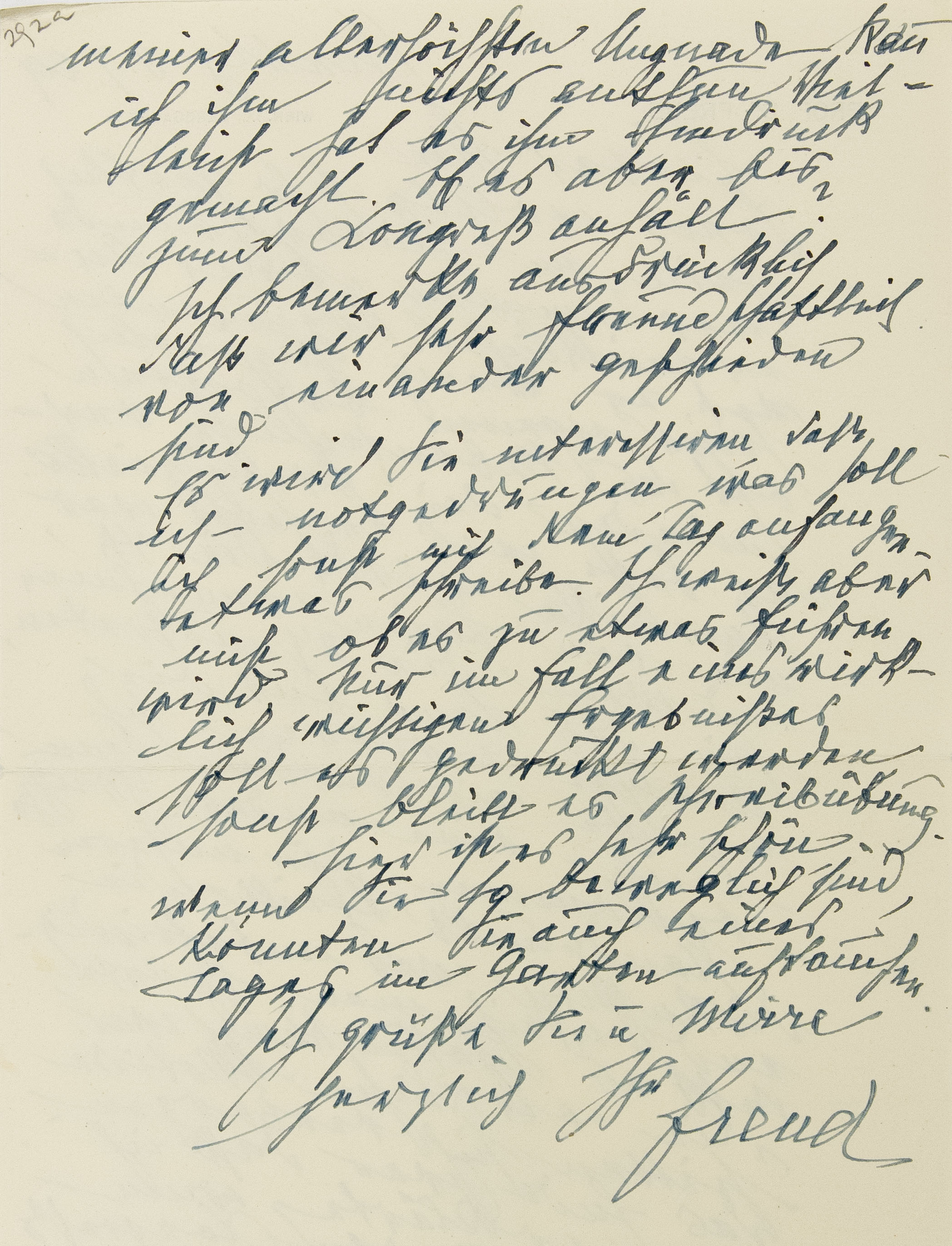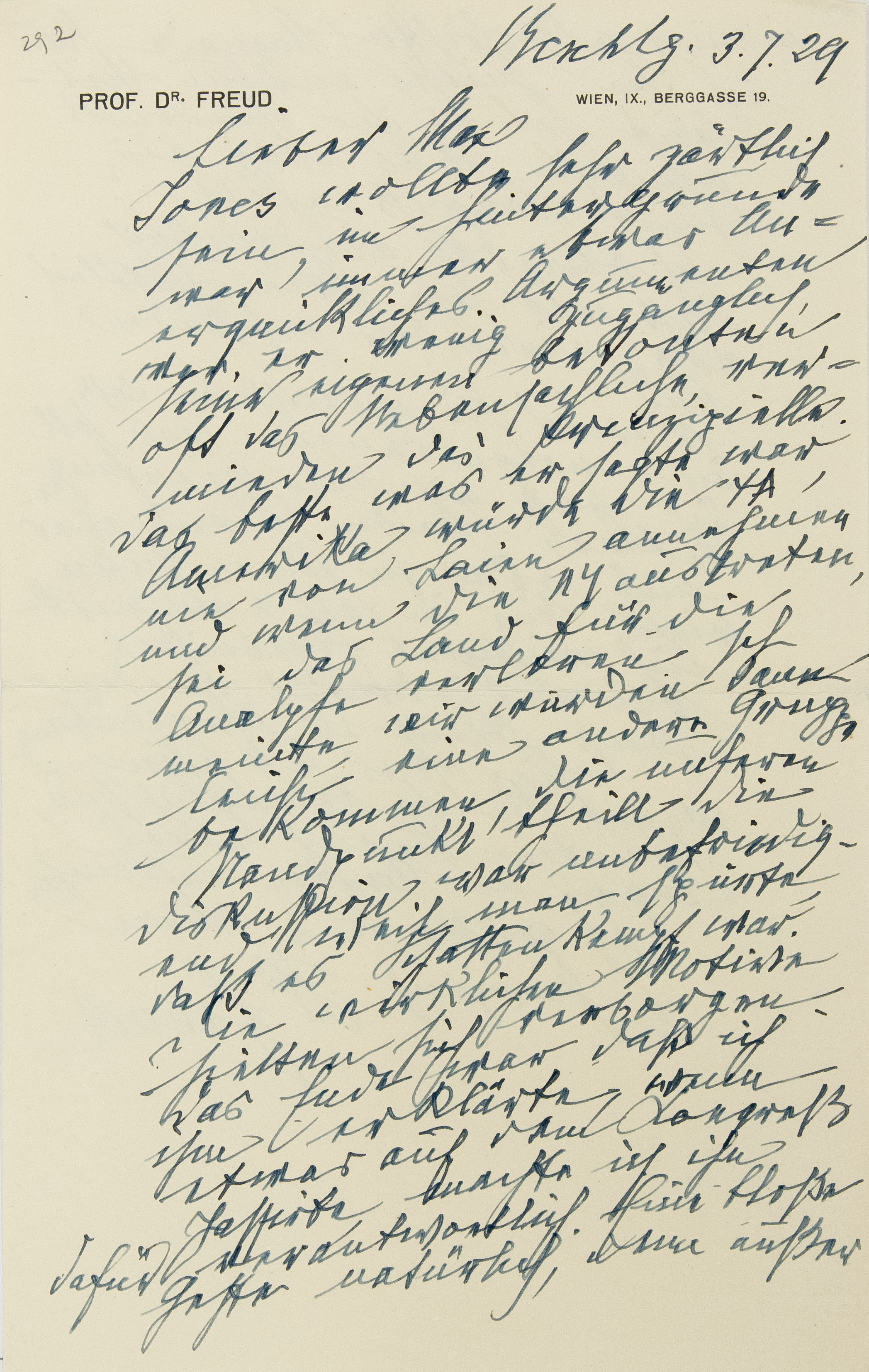 Jones wollte sehr zärtlich sein, im Hintergrunde war immer etwas Unerquickliches. Argumenten war er wenig zugänglich, seine eigenen betonten oft das Nebensächliche, vermieden das Prinzipielle. Das Beste, was er sagte, war, Amerika würde die Psychoanalyse nie von Laien annehmen, und wenn die New Yorker austreten, sei das Land für die Analyse verloren. Ich meinte, wir würden dann leicht eine andere Gruppe bekommen, die unseren Standpunkt teilt. Die Diskussion war unbefriedigend, weil man spürte, daß es Schattenkampf war. Die wirklichen Motive hielten sich verborgen. Das Ende war, daß ich ihm erklärte, wenn etwas auf dem Kongreß passierte, machte ich ihn dafüra verantwortlich. Eine bloße Geste natürlich, denn außer meiner allerhöchsten Ungnade kann ich ihm nichts antun. Vielleicht hat es ihm Eindruck gemacht. Ob es aber bis zum Kongreß anhält?