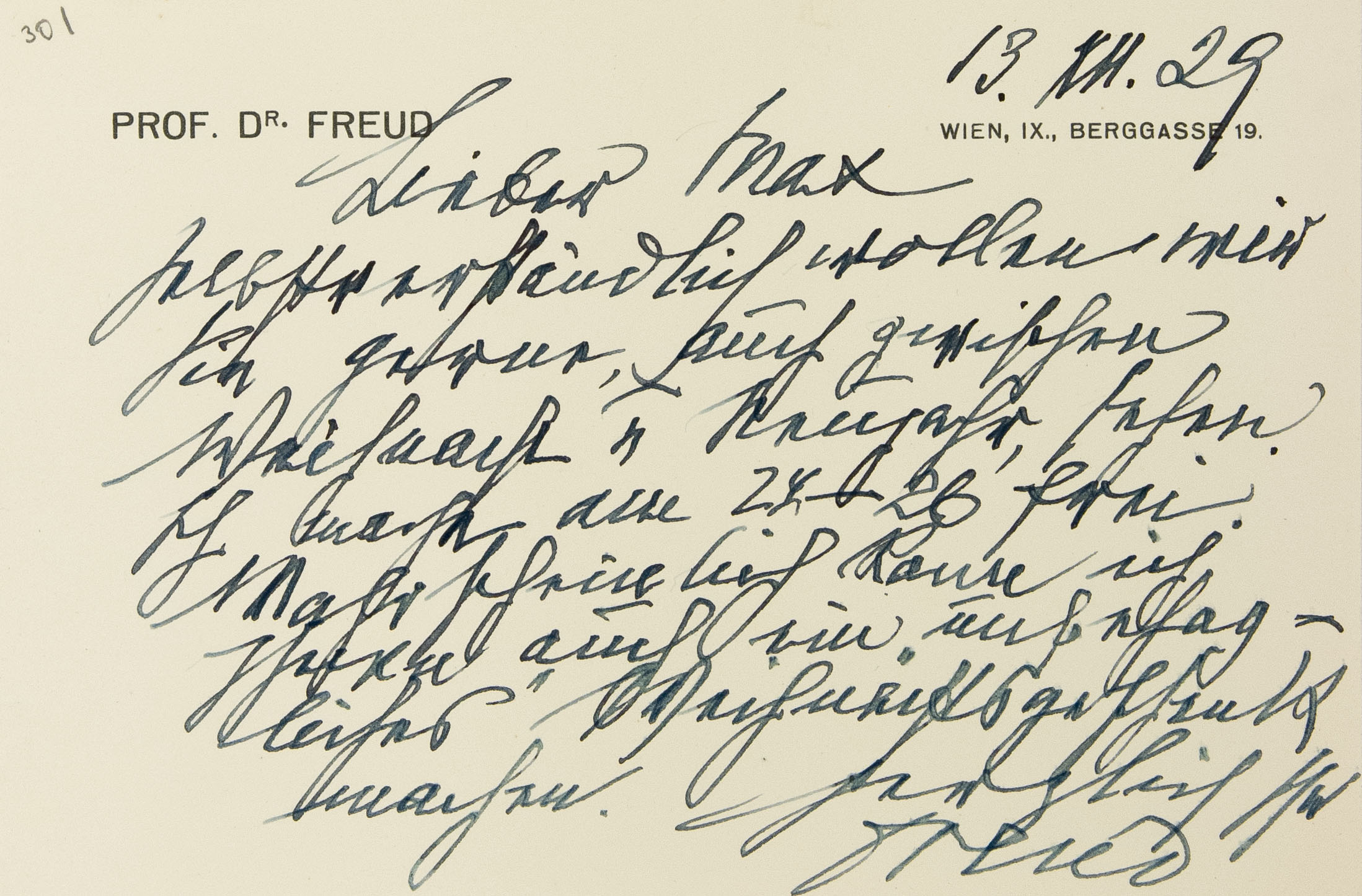 Sigmund Freud Papers: General Correspondence, 1871-1996; Eitingon, M.; From Freud; 1928; June-Dec.