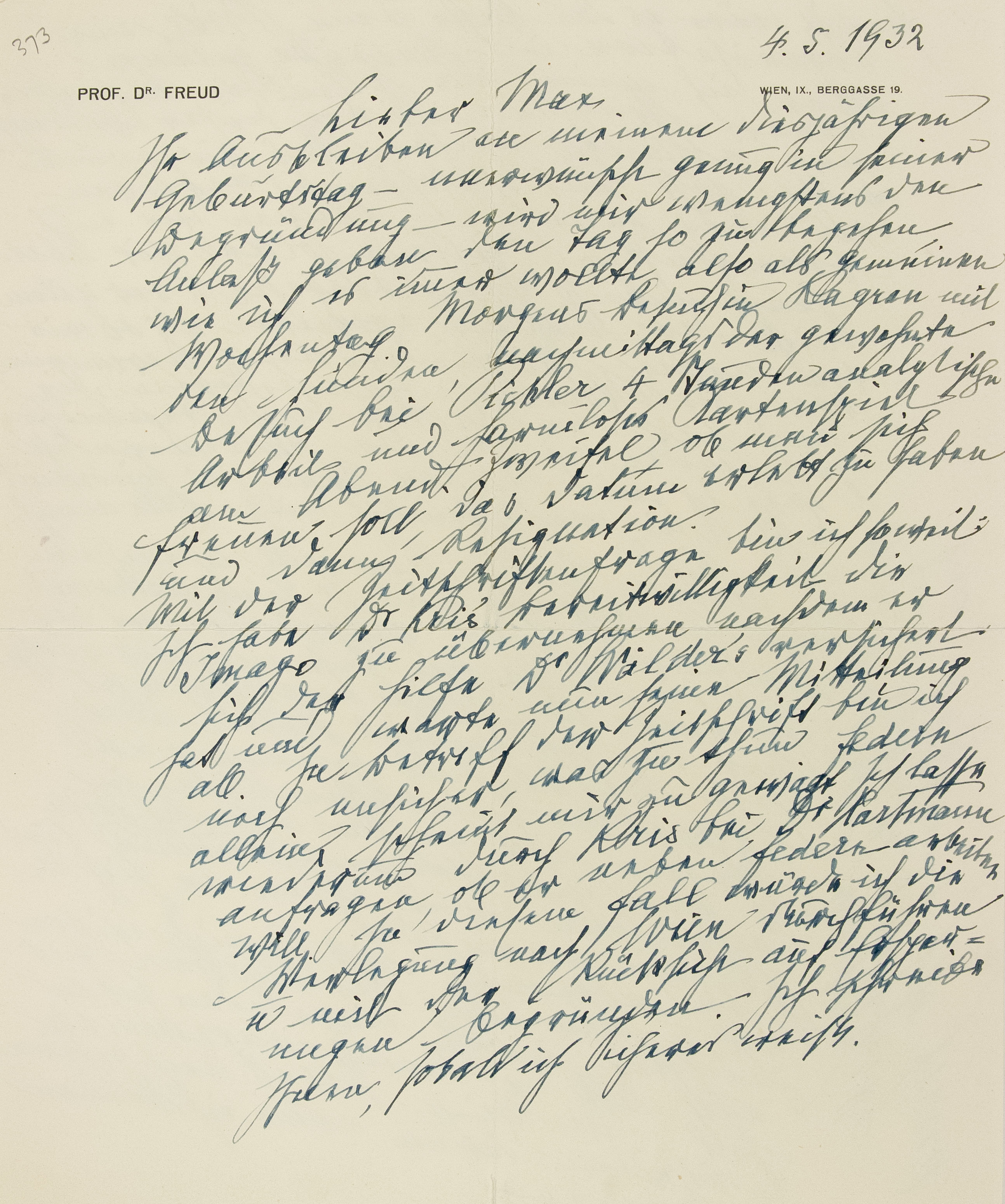 Mit der Zeitschriftenfrage bin ich soweit: Ich habe Dr. Kris’ Bereitwilligkeit, die ‚Imago‘ zu übernehmen, nachdem er sich der Hilfe Dr. Wälders versichert hat, und warte nun seine Mitteilung ab. In betreff der ‚Zeitschrift‘ bin ich noch unsicher, was zu tun. Federn allein scheint mir zu gewagt. Ich lasse wiederum durch Kris bei Dr. Hartmann1 anfragen, ob er neben Federn arbeiten will. In diesem Fall würde ich die Verlegung nach Wien durchführen und mit der Rücksicht auf Ersparungen begründen. Ich schreibe Ihnen, sobald ich Sicheres weiß.