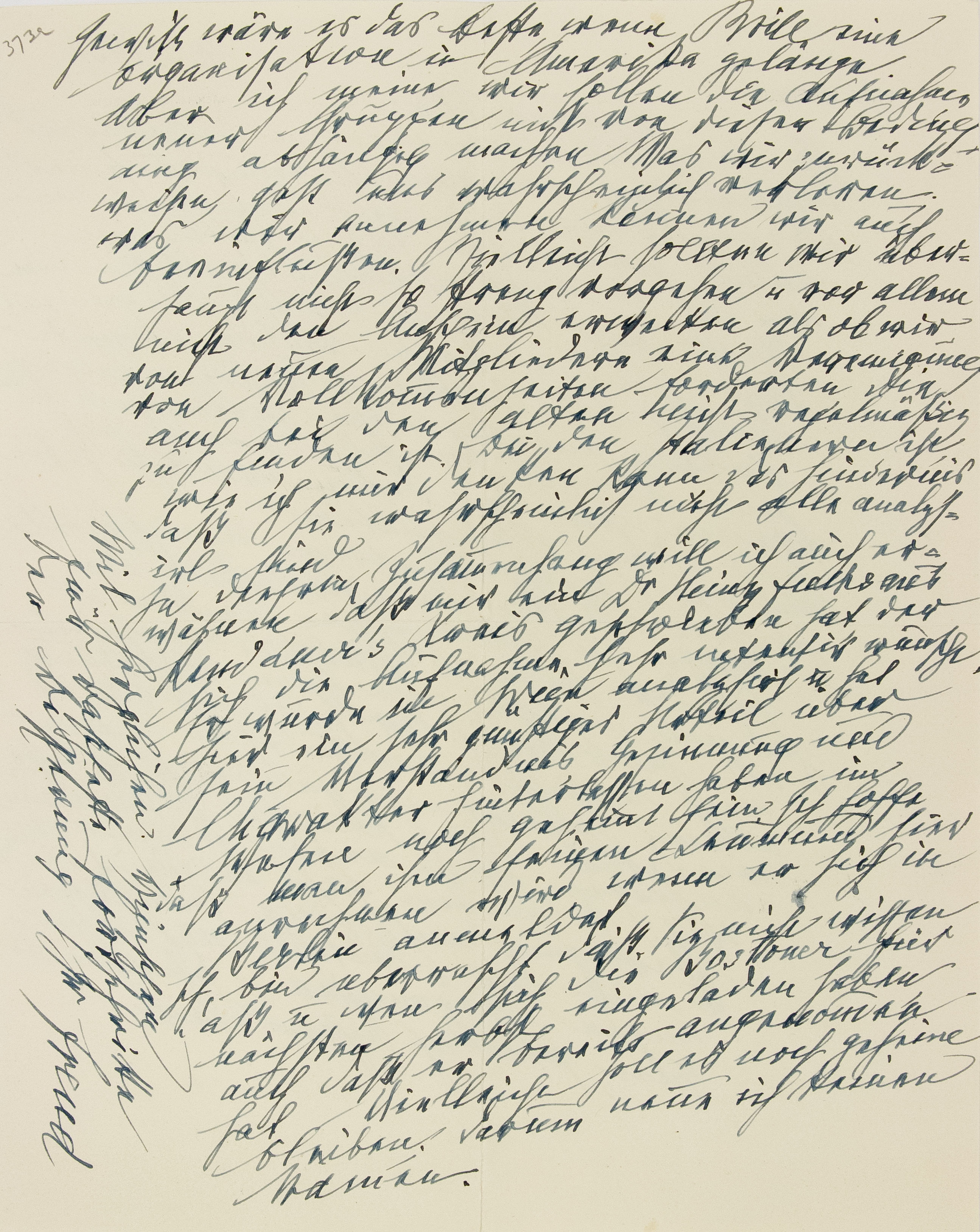 In diesem Zusammenhang will ich auch erwähnen, daß mir ein Dr. Heinz Fuchs2 aus Landauers Kreis geschrieben hat, der sich die Aufnahme sehr intensiv wünscht.3 Er wurde in Wien analysiert und solla hier ein sehr günstiges Urteil über sein Verständnis, Gesinnung und Charakter hinterlassen haben, im Wesen noch gehemmt sein. Ich hoffe, daß man ihm seinen Leumund hier anrechnen wird, wenn er sich in Berlin anmeldet.