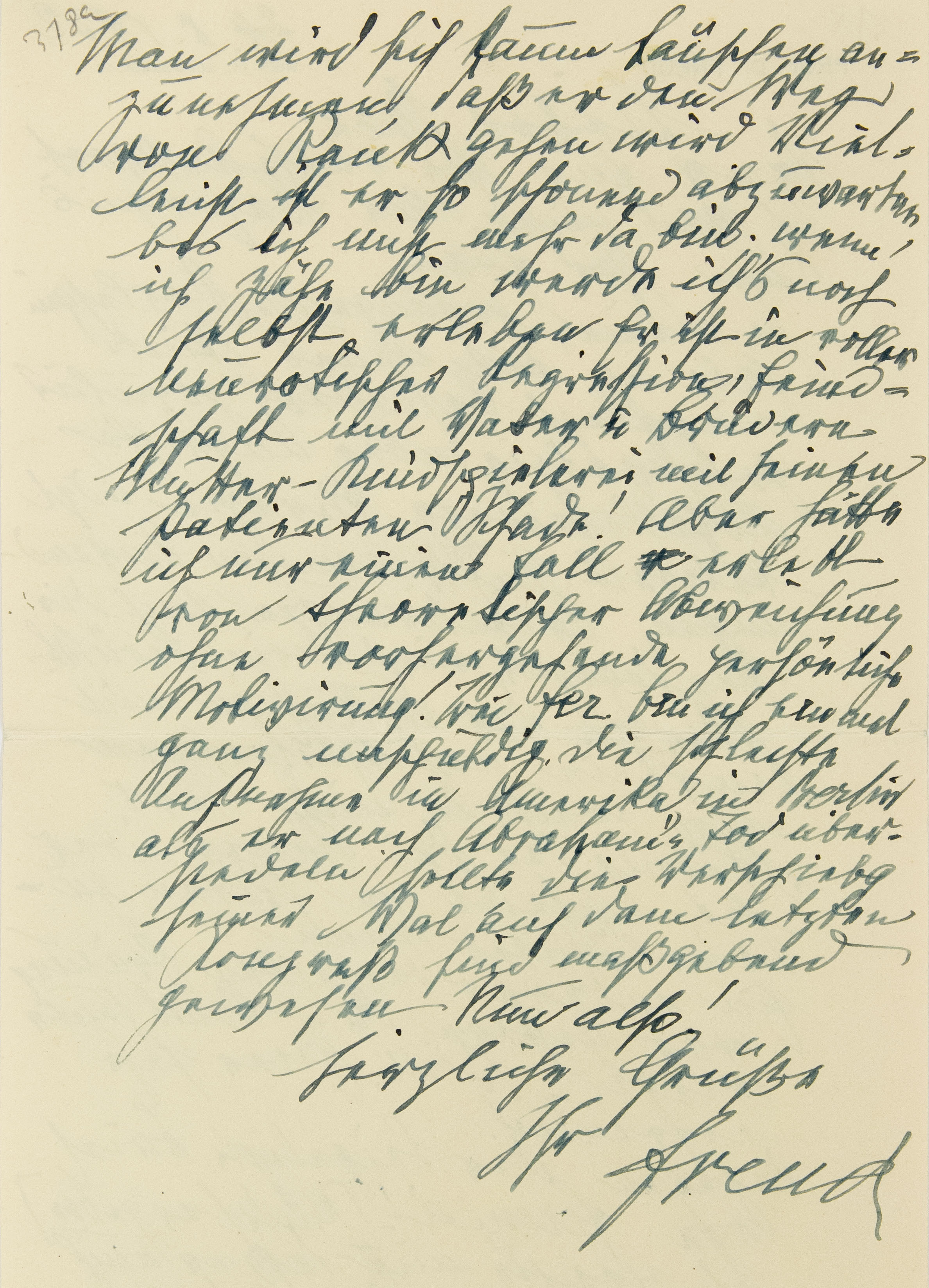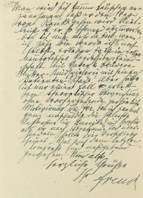 Dagegen der beigelegte Brief von Ferenczi! (Rücksendung erbetenb.)2 Ich zweifle nicht, daß er auch Sie verständigt hat, aber immerhin lesen Sie. Man wird sich kaum täuschen anzunehmen, daß er den Weg von Rank gehen wird. Vielleicht ist er so schonend abzuwarten, bis ich nicht mehr da bin; wenn ich zähe bin, werde ich’s noch selbst erleben. Er ist in voller neurotischer Regression, Feindschaft mit Vater und Brüdern, Mutter-Kind-Spielerei mit seinen Patienten. Schade! Aber hätte ich nur einen Fallc erlebt von theoretischer Abweichung ohne vorhergehende persönliche Motivierung! Bei Fer[enczi] bin ich einmal ganz unschuldig.3 Die schlechte Aufnahme in Amerika, in Berlin, als er nach Abrahams Tod übersiedeln sollte, die Verschiebung seiner Wahl auf dem letzten Kongreß sind maßgebend gewesen. Nun also!