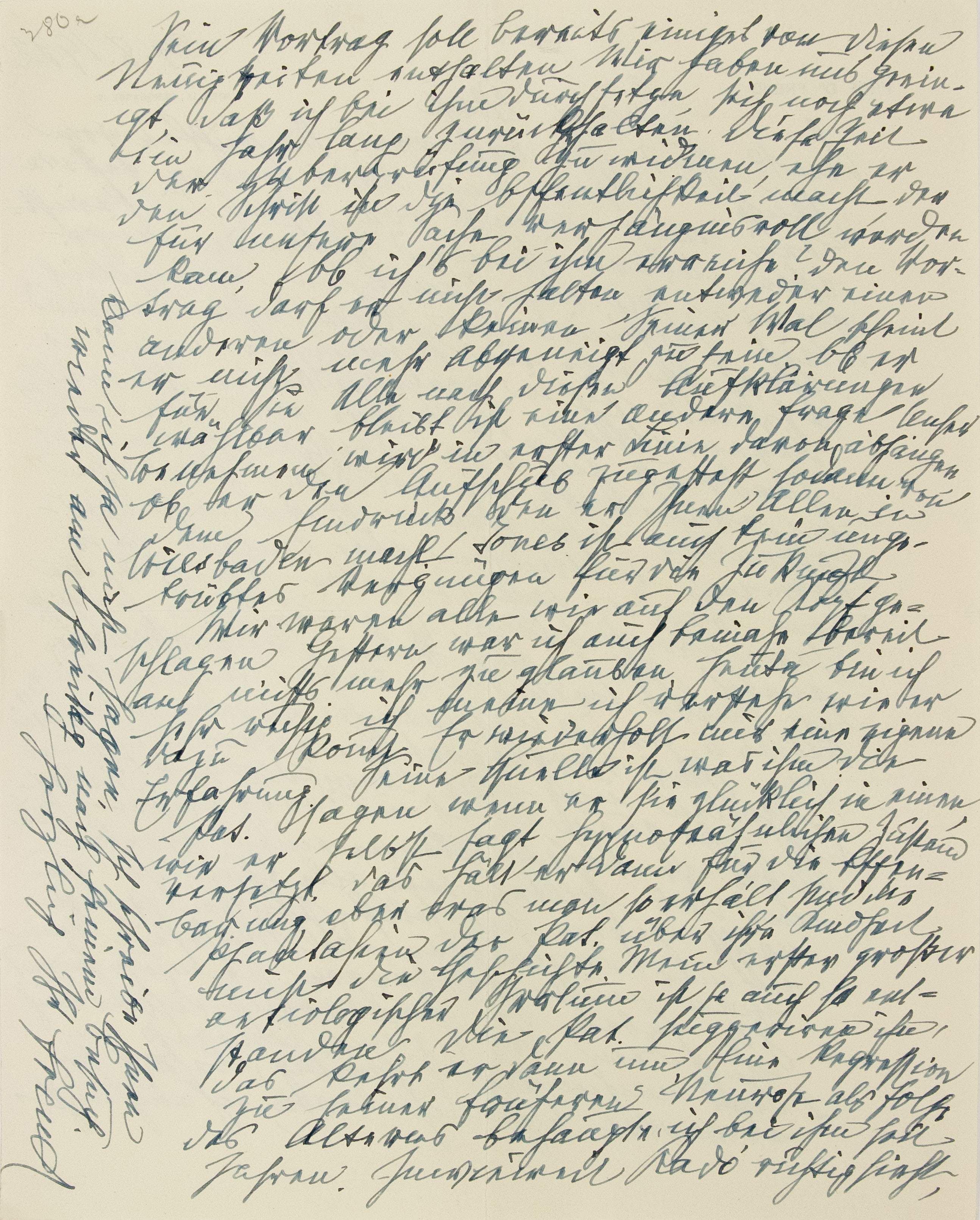 Sein Vortrag soll bereits einiges von diesen Neuigkeiten enthalten. Wir haben uns geeinigt, daß ich bei ihm durchsetze, sich noch etwa ein Jahr lang zurückzuhaltena, diese Zeit der Überprüfung zu widmen,1 ehe er den Schritt in die Öffentlichkeit macht, der für unsere Sache verhängnisvoll werden kann. Ob ich’s bei ihm erreiche? Den Vortrag darf er nicht halten, entweder einen anderen oder keinen.2 Seiner Wahl scheint er nicht mehr abgeneigt zu sein. Ob er für Sie alle nach diesen Aufklärungen wählbar bleibt, ist eine andere Frage. Unser Benehmen wird in erster Linie davon abhängen, ob er den Aufschub zugesteht, sodann von dem Eindruck, den er Ihnen allen in Wiesbaden macht. Jones ist auch kein ungetrübtes Vergnügen für die Zukunft.