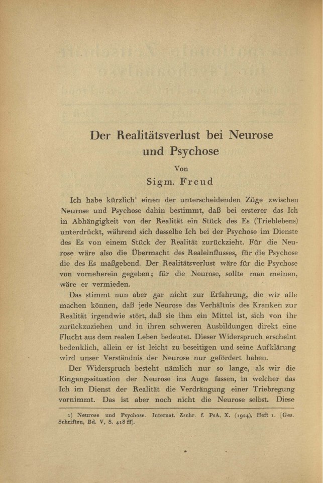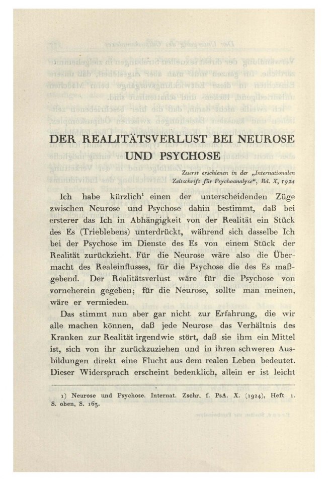 Freud, Sigmund 1924-004/1940 1924e 10590 Der Realitätsverlust bei Neurose und Psychose GW 13 361–368 Fertig Nicht erforderlich/ Nicht erforderlich/ Nicht erforderlich/ Nicht erforderlich/ Nicht erforderlich/