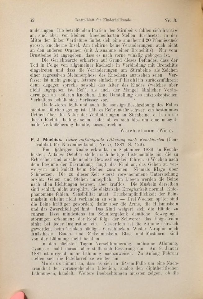 Rezension von: Moebius, P[aul] J[ulius] ›Über aufsteigende Lähmung nach Keuchhusten‹