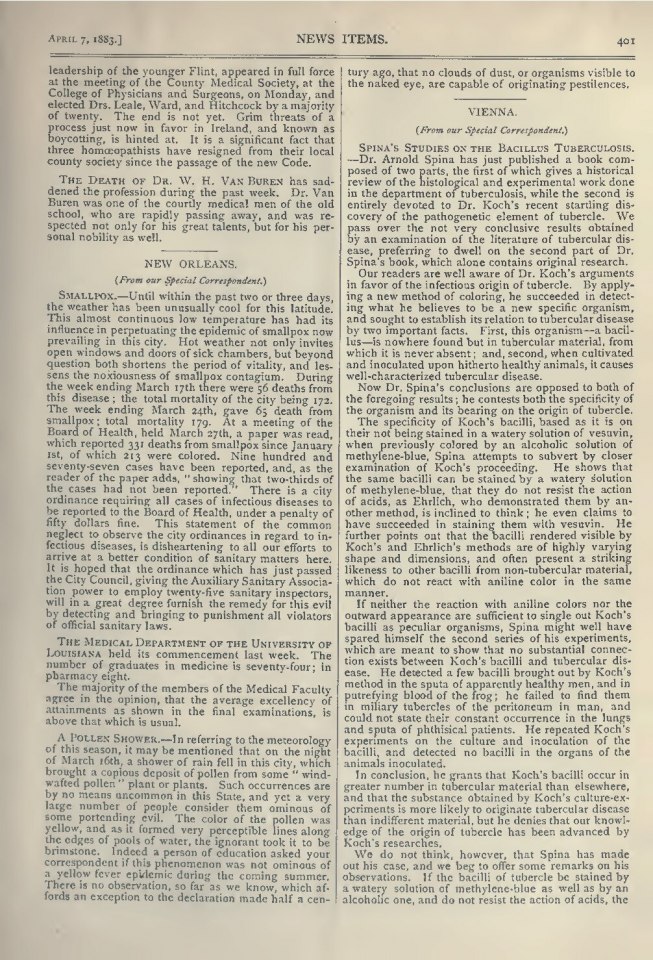 Freud, Sigmund | 1883-201/1883 | 1883a | 1883-01 | 73569 | Rezension von: Spina, Arnold ›Studies on the bacillus of tuberculosis‹ | The Medical News, 42 January-June, 1883, 14 | 401–402 | Fertig ✔ | Fertig ✔ | Ganz fertig / zutreffend ✔ | Fehlt ✖ | Fehlt ✖ | Ganz fertig / zutreffend ✔ | ✔ | EB | ✔ | |