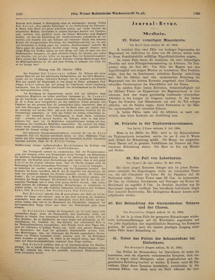 Freud, Sigmund | 1884-248/1884 | 1884eee | 1884-56 | Rezension [unsigniert] von: Grahil ›Ein Fall von Leberhernie‹ | Wiener Medizinische Wochenschrift, 34, 1884, 45 | 1344 | Fertig ✔ | Fertig ✔ | Ganz fertig / zutreffend ✔ | Fehlt ✖ | Fehlt ✖ | Ganz fertig / zutreffend ✔ | ✔ | EB | ✔ | ||