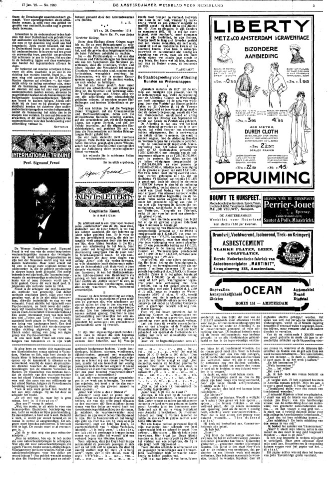 | Eeden, Frederik van | 1914-071/1915.1 | 1915g [1914] | Prof. Sigmund Freud | De Amsterdammer, 39, , 1960 | 3 | Fertig ✔ | Fertig ✔ | Ganz fertig / zutreffend ✔ | Teilweise - | Fehlt ✖ | Ganz fertig / zutreffend ✔ | ✔ | EB | ✔ | |||