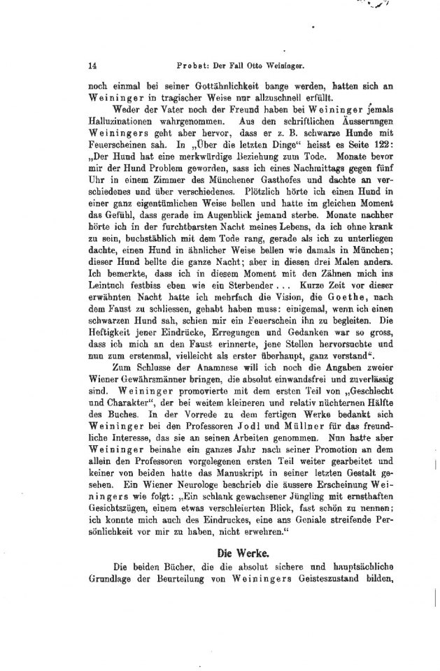 Freud, Sigmund 1904-072/1904 1904i Brief an Ferdinand Probst [?, 1903?, Teilabdruck] Der Fall Otto Weininger 14 Fertig Fertig Ganz fertig / zutreffend Fehlt Fehlt Ganz fertig / zutreffend EB