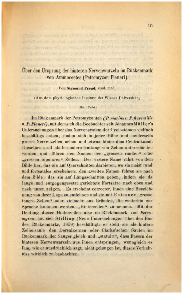 Freud, Sigmund | 1877-002/2015 | 1877-02 | Über den Ursprung der hinteren Nervenwurzeln im Rückenmarke von Ammocoetes (Petromyzon Planeri) | SFG 1 | 39, 41–53 | Fertig ✔ | Nicht erforderlich/ | Nicht erforderlich/ | Nicht erforderlich/ | Nicht erforderlich/ | Nicht erforderlich/ | ✔ | ✔ |