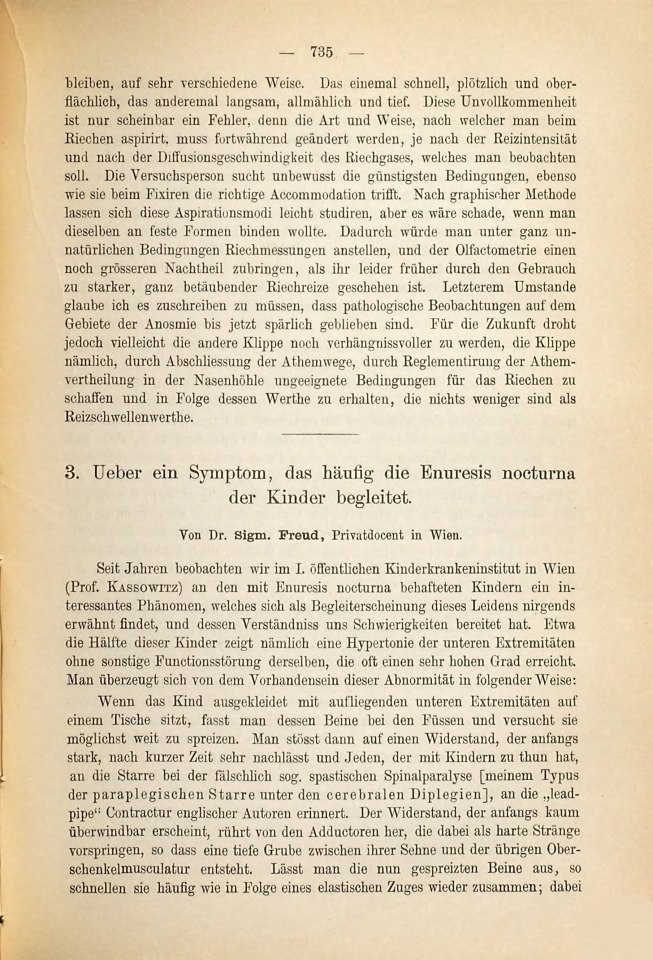 Freud, Sigmund (1893g): Über ein Symptom, das häufig die Enuresis nocturna der Kinder begleitet. Neurol. Zbl., Bd. 12 (1893), S. 735-737.