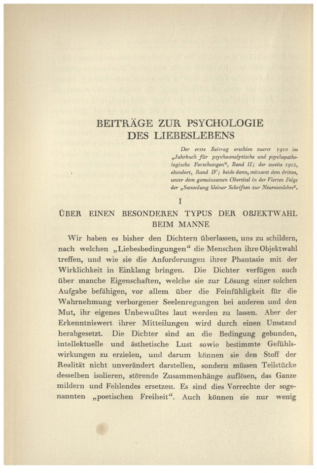 Unter dem Obertitel ›Beiträge zur Psychologie des Liebeslebens› erscheinen von 1910-1918drei Arbeiten: